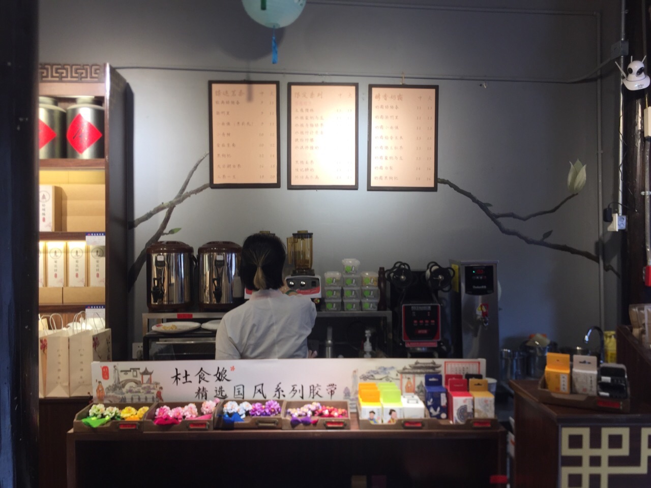 东关街上的一家店。里面除了饮料,还卖一些糕点和文创类用品。 店内装修比较典雅,但整条街都没开空调,觉得有些闷热(五一)。糕点试吃会觉得一般,就买了饮料。饮料基本都是茶,而且价格也不贵,但味道嘛,就没什么经验的效果。
