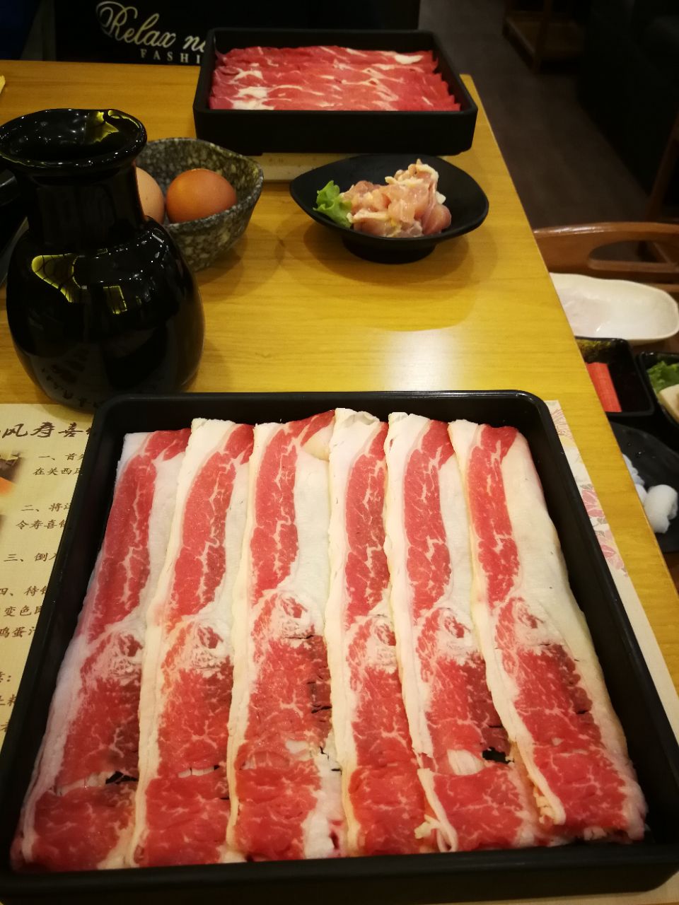 团购拔草,老早就看中的一款寿喜烧了,鸡蛋打碎在碗中,涮牛肉蘸鸡蛋液,味道还蛮特别的,单点价格340,可以去晚上购买套餐价格138,实惠又美味,建议点牛肉和羊羔肉,这是味道最赞的,其他小食挺多,各有千秋啦