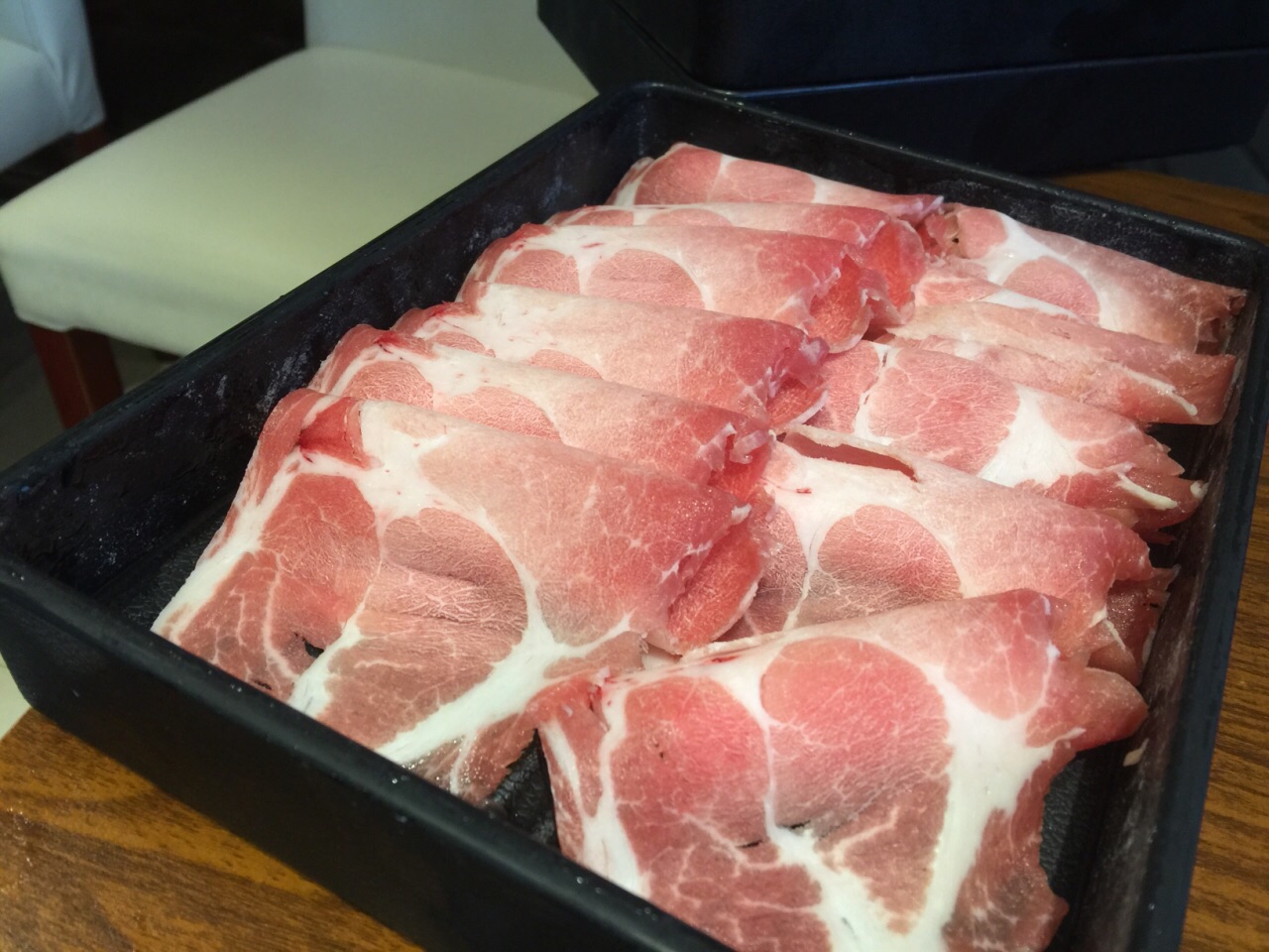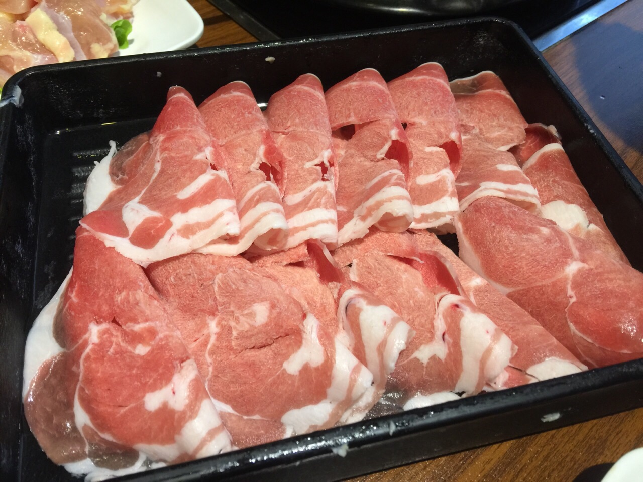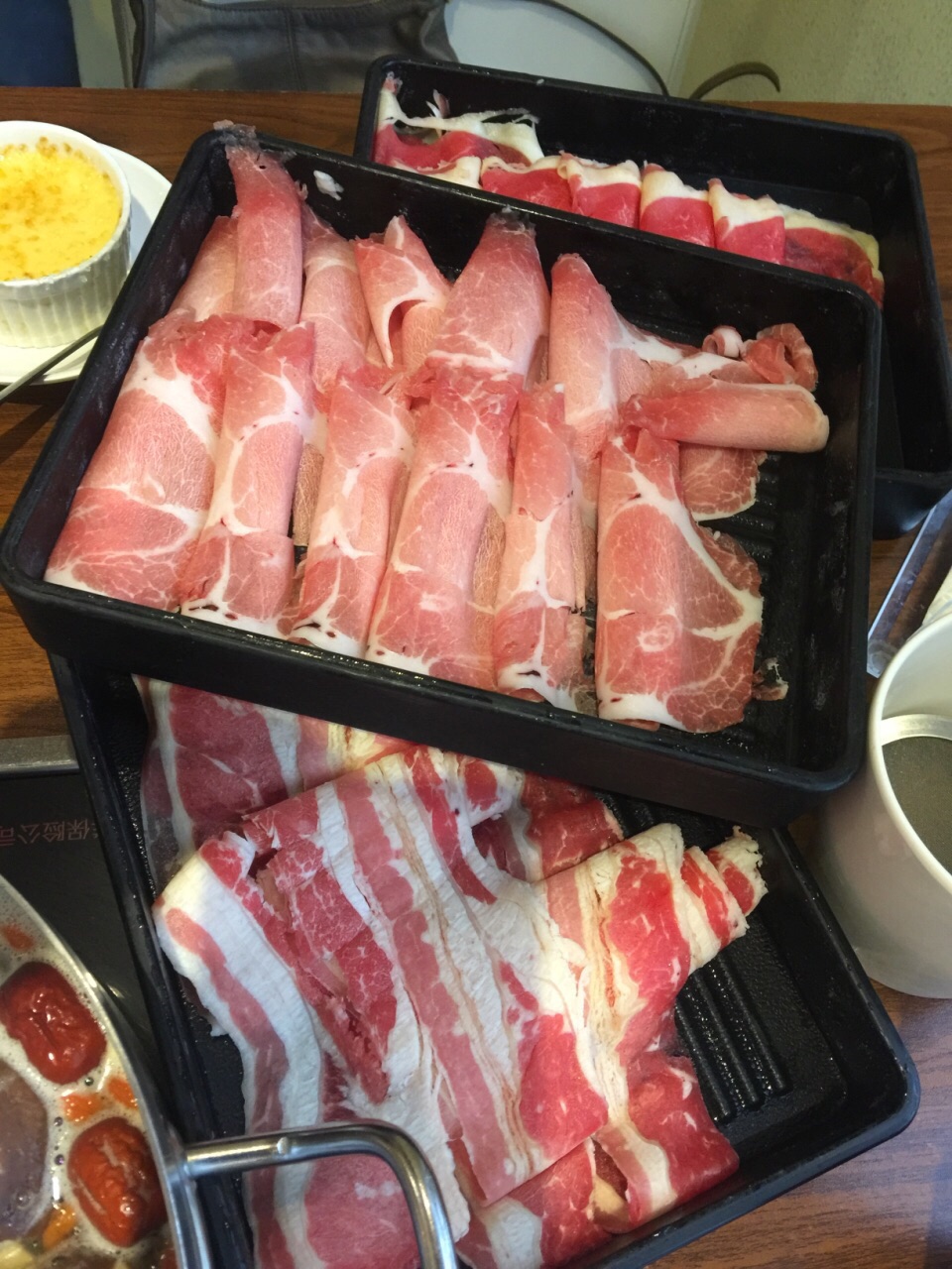 在朋友家附近的商圈,这家面门看起来挺大,中午人气很旺几乎是满座,这家店主推自助火锅,有好几个档次可供选择,我们没选海鲜类的但大部分肉都可以点,锅底也有几种搭配。点了番茄锅也算是特色,服务员帮我们各种肉类都来了两份,主要是牛肉和羊肉,薄薄的一片,下锅后涮一会就好了,相对来说羊肉会更嫩一点,但不算很鲜美。蔬菜是自己去自助台拿,还有些饮料都是免费的。总体来说性价比还行。