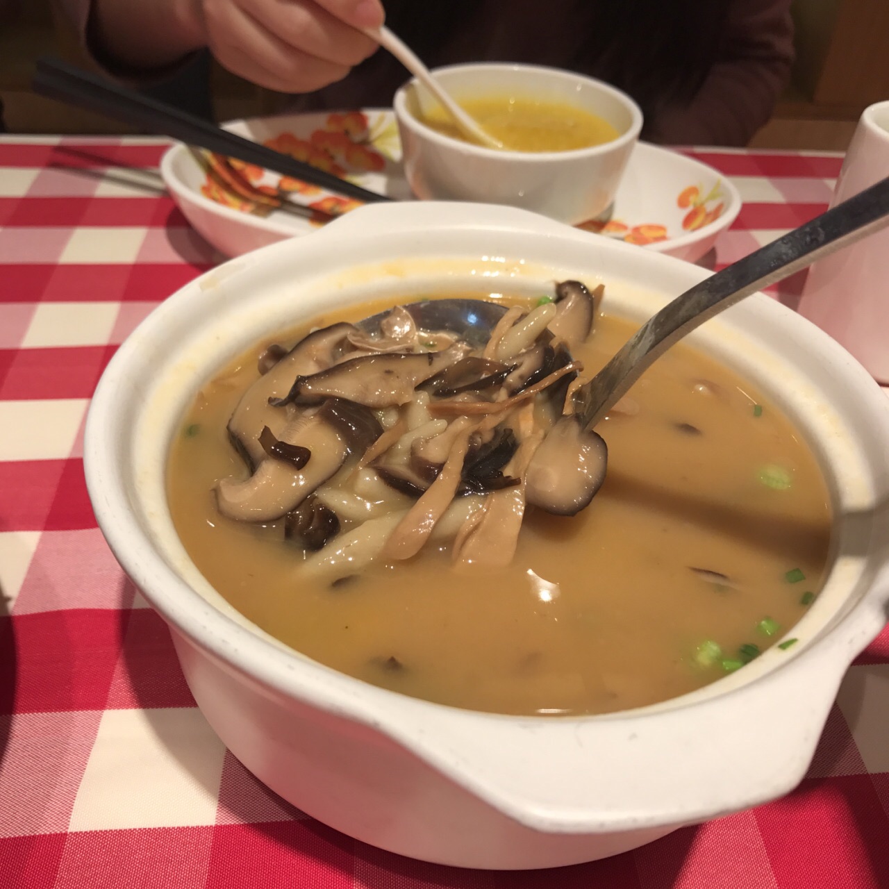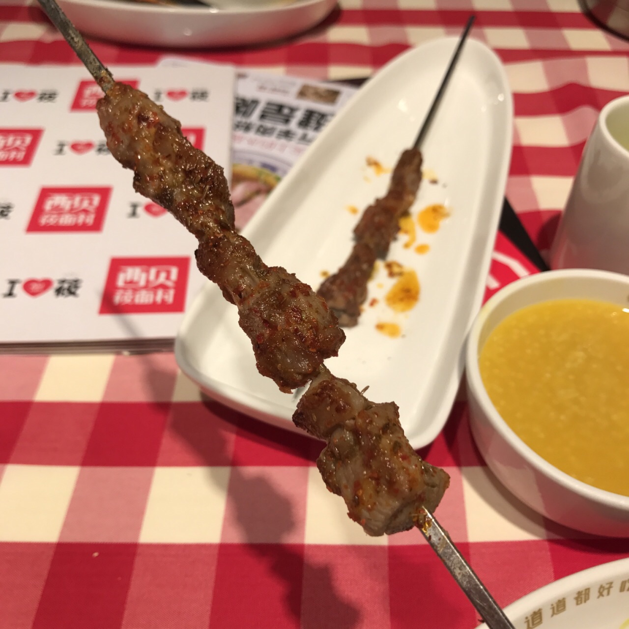 [服务]第一次吃来的就是凯德店 去得晚午饭点后客人就只剩一两桌,但店员都很尽职地服务~ 每次去蘑菇筱面||(有时会炒得比较油,酸菜是很喜欢的,很解腻嚼起来脆脆的)|羊肉串(规定2串起点)都是必点的 最近去吃小米粥是扫码免费送一碗的。 我叫过外卖,比堂食便宜会有满减,份量也不会少,家在附近不想跑的外卖也实惠 一直困惑应该是叫youyou面还是xiaoxiao面|暂时无解