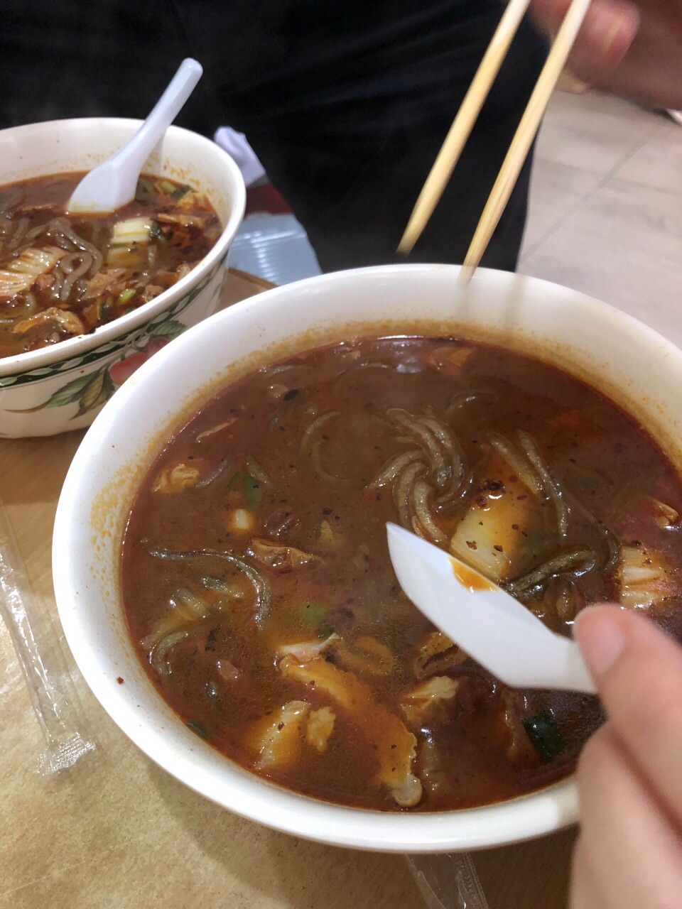 网友2018-05-03顶着烈日大中午的跑去吃酸辣粉,我今天还不太想吃辣的,纯属瞎凑热闹。薯粉粘一些劲道,米粉爽滑顶着烈日大中午的跑去吃酸辣粉,我今天还不太想吃辣的,纯属瞎凑热闹。薯粉粘一些劲道,米粉爽滑。不辣的一碗加了几勺辣汤,多加醋,吃起来挺爽,一碗吃下去挺饱的!