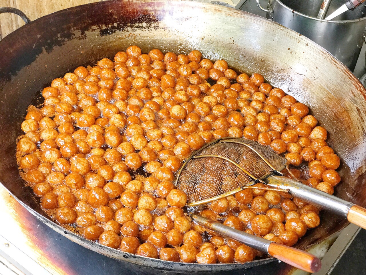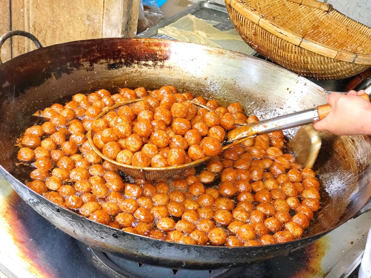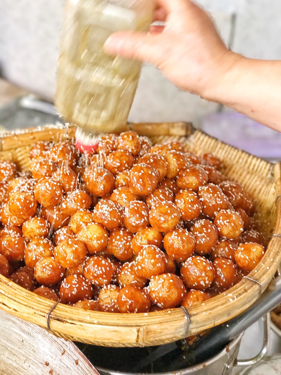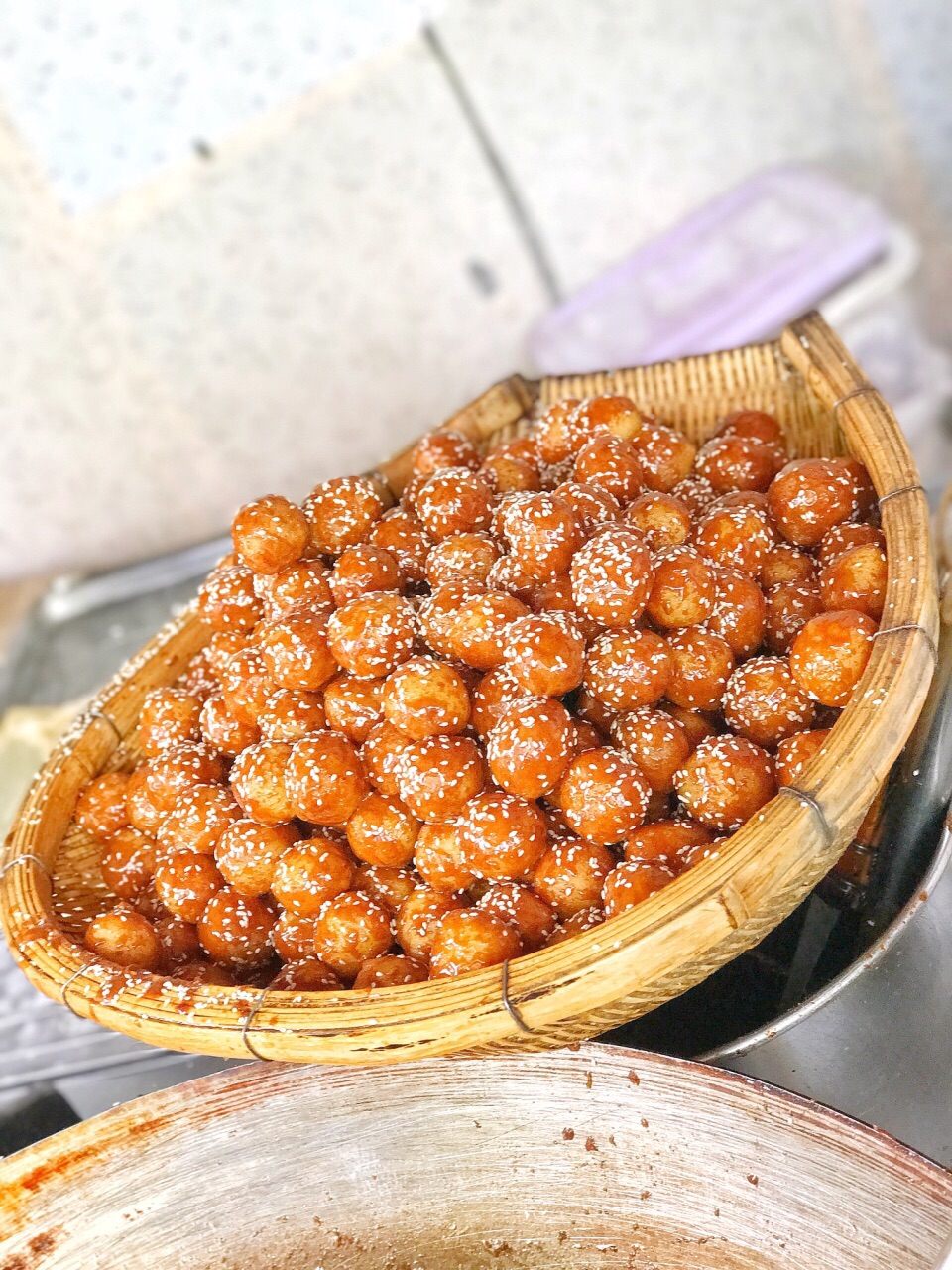 总评: 当我咬下第一口的时候,我听到了咔嚓作响的破裂声,快感动哭了。 有多久没吃到这么这么脆的糖油果子了呢?记不得了。 切记,新鲜出锅的糖油果子一定要放凉了再吃,因为凉了才会脆! 也不能放久了哈,太久受潮了,也就软了。 总之,一定要在最恰当的时候食用,那样才是美味的最佳时刻,不可太随意了。 评分:92分 性价比:❤❤❤❤❤ 他们是有正式门店的,虽然招牌也就是一个破烂的木板而已,但是总比那些流动的小推车要稳定啊,不用担心找不到卖家。 老板是夫妻俩,一个炸糖油果子,一个在旁边打下手,态度都很好,特别配合顾客拍照,也会提醒客人不要太心急,凉了吃才最好。 看他们笑呵呵的做生意,感觉也很甜蜜哦,是那种很知足的平凡幸福。 糖油果子,一串5个,4元一串。比起那些软趴趴的伪糖油果子,这个价格真的是太超值了。 在宽窄巷子随便找一家也要好7元钱吧,关键是还不好吃! 我到店的时候,老板还在炸糖油果子,看他不断的在油锅里翻转这些果子,确保每一颗都受热均匀,上色充分,也是挺费劲儿的。 火候够了,时间充足了,可以起锅了。再均匀的撒上一层香香的白芝麻,用竹签穿成串,完成! 刚开始拿到有些迫不及待,在还没冷透的情况下吃了一颗,味道还是蛮好,只是有点软韧弹牙,还有点粘牙。 等到冷透了,咬了一口,那种感觉完全不一样,有种吃冰糖葫芦的感觉,特别脆特别香。 这糖油果子也很好看啊,大小一致,色泽油亮晶莹,跟琥珀一样剔透光滑。 反正我是吃完一串,立马后悔了,怎么没多买几串!根本吃不够呀! 下次必须吸取教训,一次多买几串,吃满足了才行。
