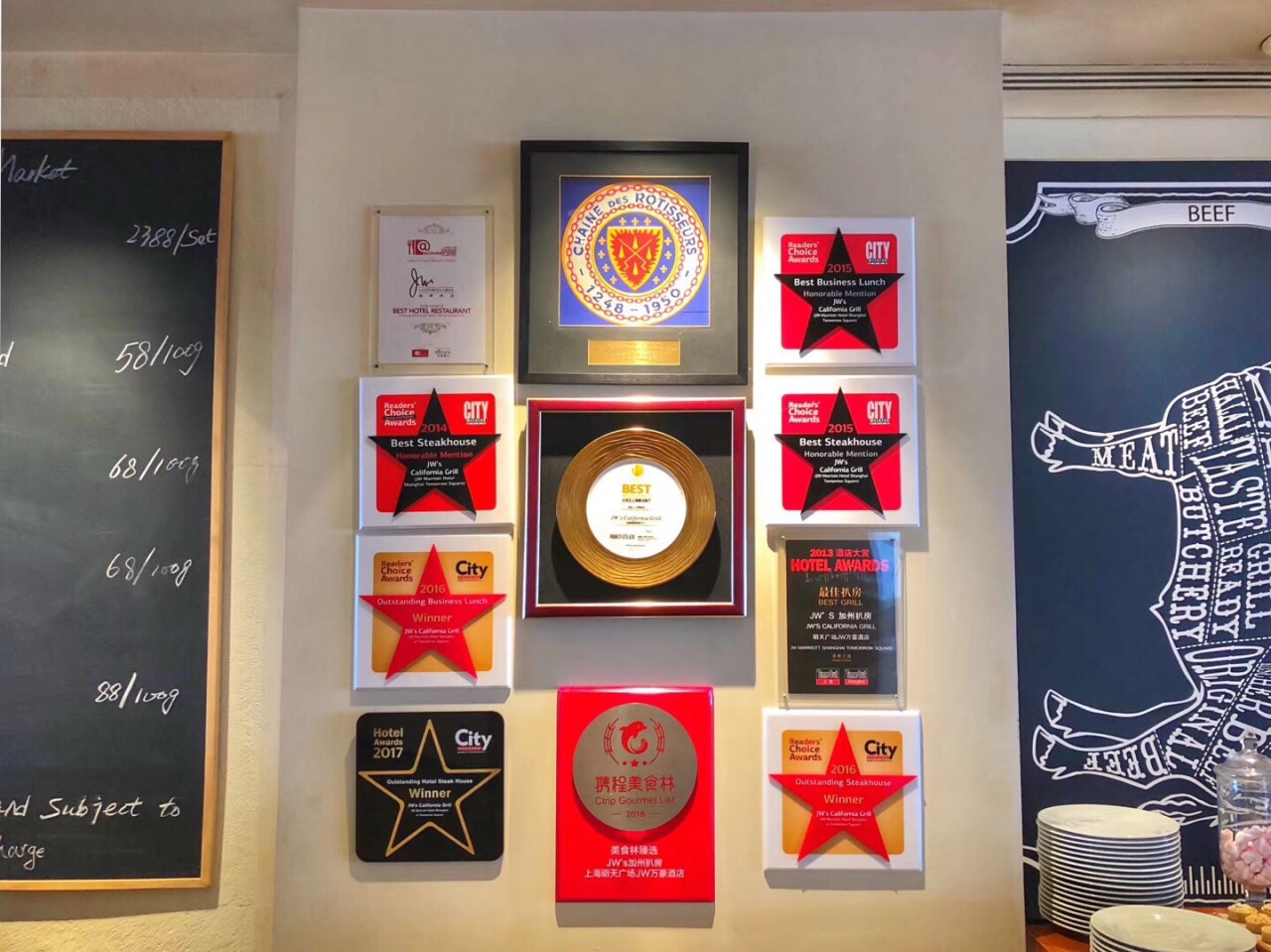 餐厅周 选了一西 一中 一午 一晚 印象中JW扒房 每次活动都没落下 在酒店40楼 电梯停在38楼 需再坐另一部电梯上去 38楼的自助餐在2014年有扫过 这次换扒房试试 选择了午餐 大堂位 窗边望去的风景无限好 餐厅的前菜和甜品是自助式的 入口就是前菜区 再往里是甜品区 可点酒水 也有免费柠檬水提供 「前菜自助」有餐前面包提供 法棍、核桃类餐包可以有;前菜即为辅菜 某些会在主食中出现 火腿、芦笋、色拉 我拿的这些 「烤美国西冷牛排配芝麻菜 帕尔马干酪」牛排挺大份 有肉汁 黑胡椒提味 七分熟吃口香嫩;另一份主食的虾仁有点雷 「甜品自助」酒店出品不差 想连连叫好的也没有 甜品控每样都不能错过 全撸了遍 挞类选择较多 酒杯颜值较高 内容较空洞 午餐包含服务费 整餐感受平平