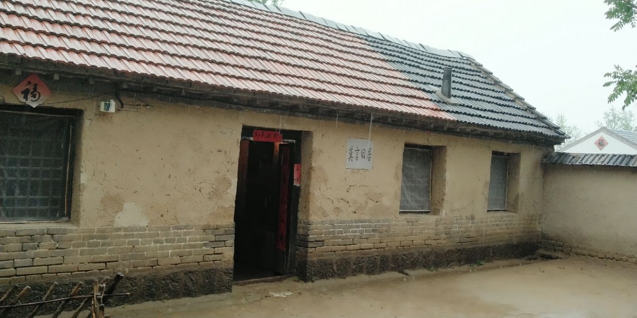 一代编剧文豪的住宅,跟随朋友特意介绍去了一趟高密,因为安丘那边有个电影院,是朋友开的,所以顺便去高密看了一看,在以前来讲,莫言旧居的后面是一条河,这个地方一定是一块风水宝地,房子嘛也就那样,看老的东西就是看情怀。可以细细品味一下,曾经回想一下曾经他们生活的状态和小时候的状态,附近有很多卖酒的九儿红,建议可以买一桶回去尝一尝,150元买了两坛,一坛五斤,还没有尝,附近有很多卖年画,剪纸的,高密本地特色,非文化物质遗产的东西,也可以带点纪念品回去,不过我们去的时候正好赶上下雨,并且季节来讲,并非是旅游旺季,所以人烟稀少,但是,不收门票。