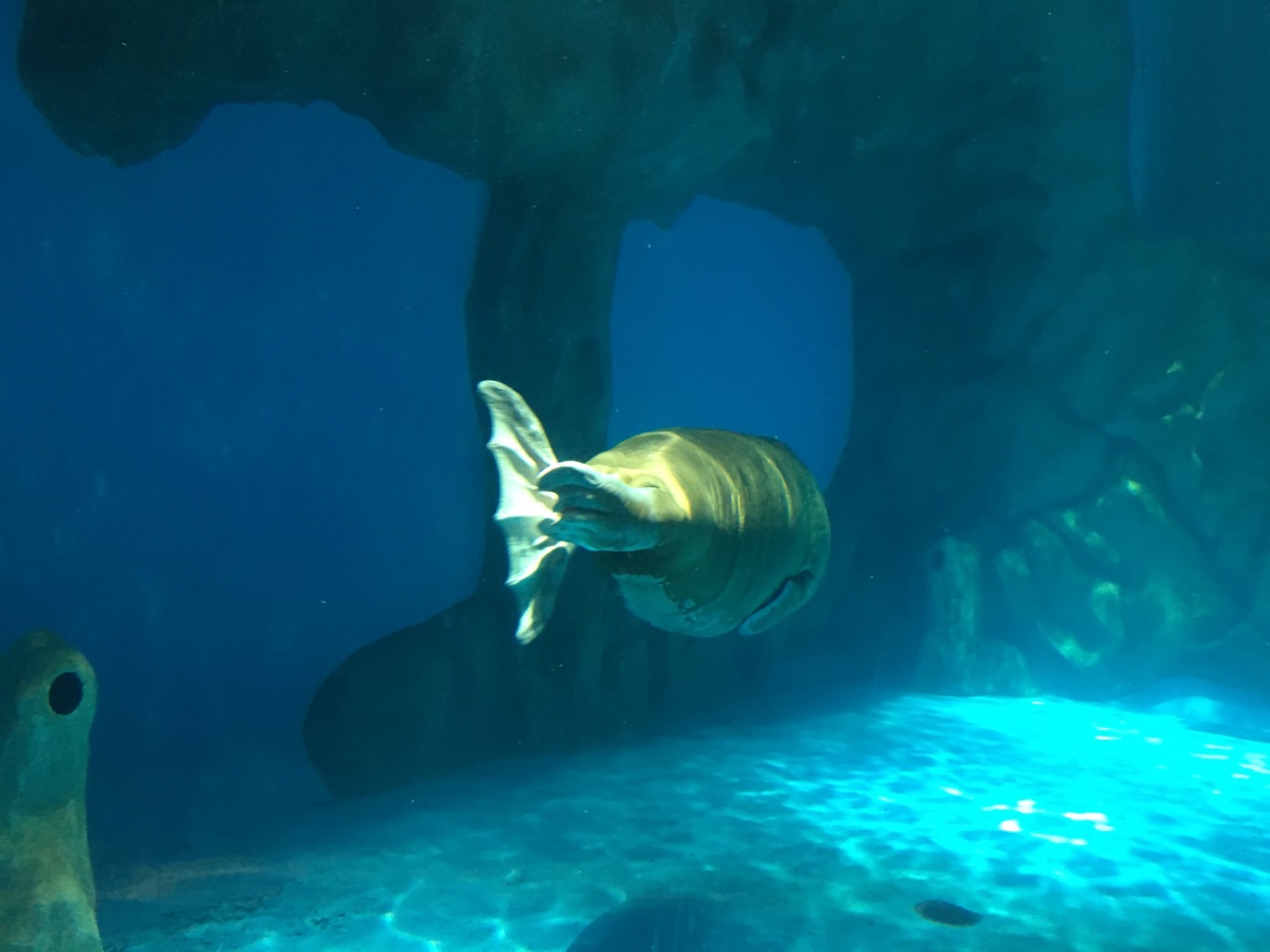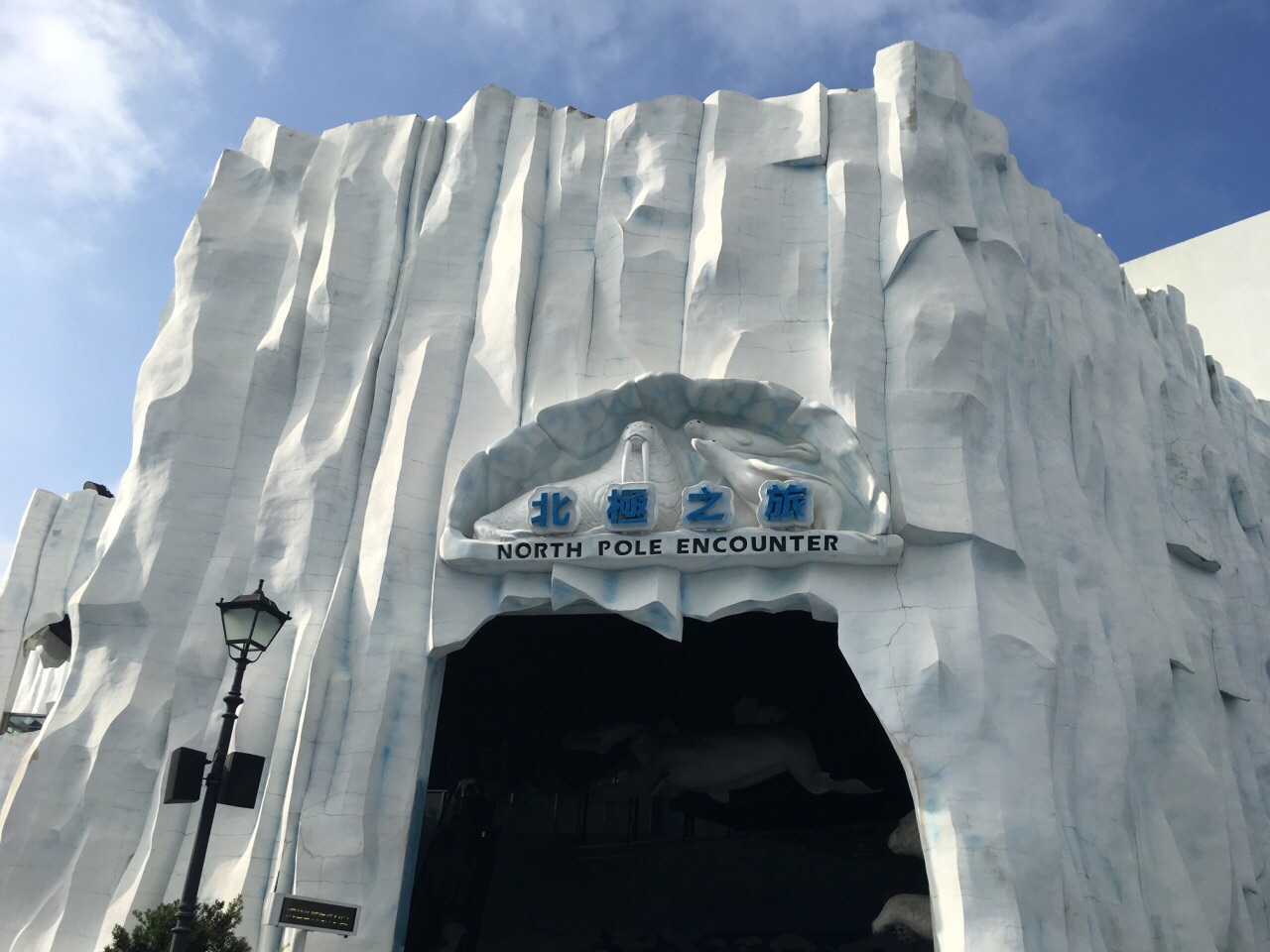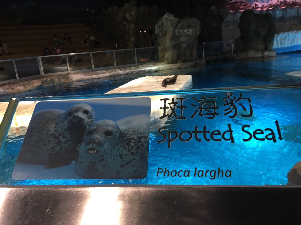 “北极之旅”4个字,出现在白色雪山上。进门,一阵凉意,先是从水面上看斑海豹的游弋、再下楼进入水底,隔着玻璃观察太平洋海象在头顶款款摆尾。