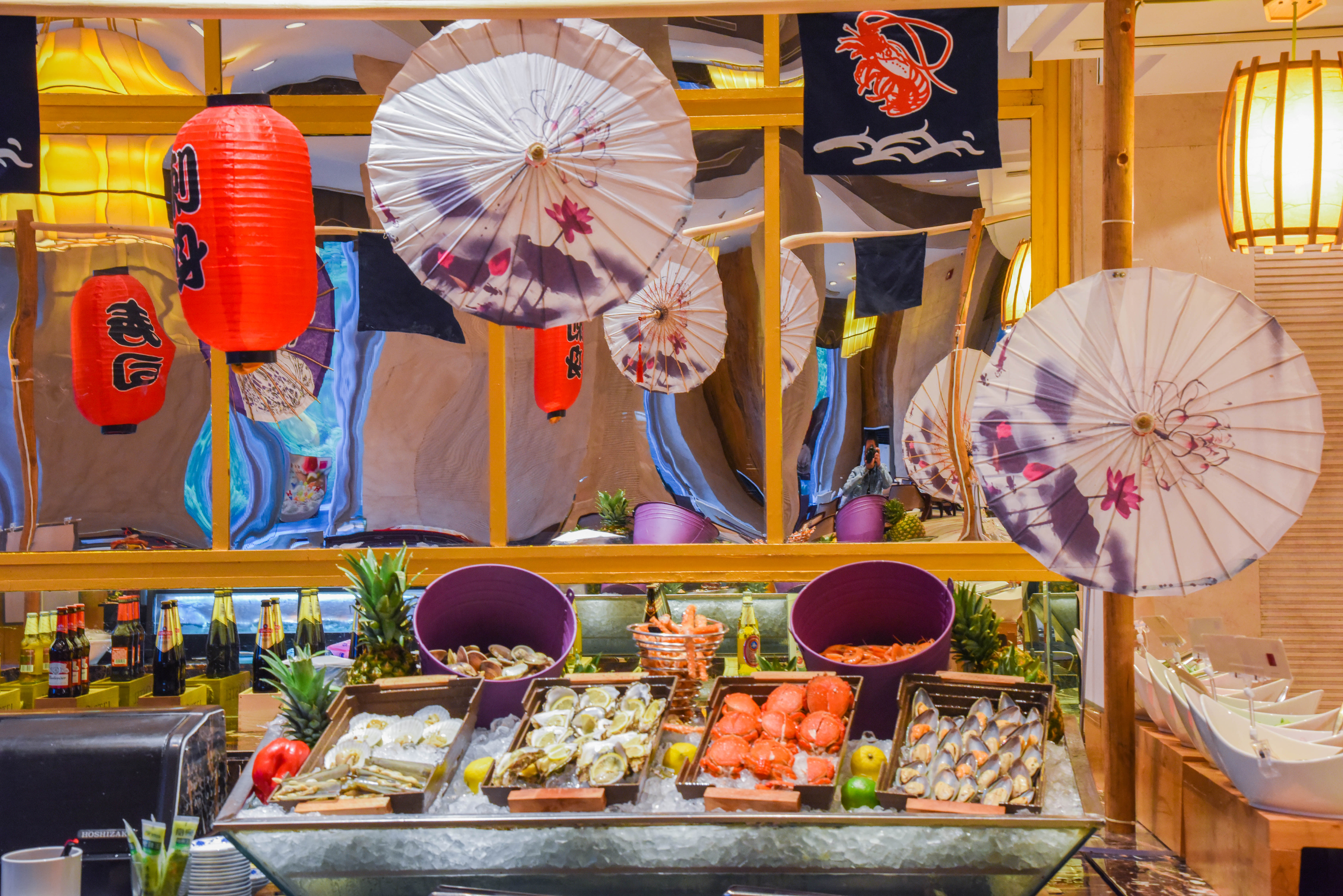 【位置】 富都盛贸咖啡苑·自助餐是常州比较有名的高端自助品牌,位于通江路汉江路附近的五星级酒店富都盛贸饭店内,距离沪蓉高速常州互通仅一公里车程,十多条常规公交线及BRT线经过。餐厅位于酒店大堂东侧(进门左手边),到店消费可索要停车券享地下车库免费停车,交通十分便捷。 【环境】 咖啡苑自助环境宽敞明亮,视野开阔靓丽,各方面都透露着一股优雅的气息。高端大气的用餐场所,精致的餐品摆盘,给用餐带来愉悦的体验,来这里吃,就连扶墙出门都是优雅的。 【菜品】 咖啡苑供应全天候自助餐及国际风味零点佳肴,而不定期举行的万国美食节和推陈出新的菜品也是他家最大的特色所在。 餐厅拥有海鲜日料、面档和烧烤西式档三大开放式演绎厨房,不仅严格保证食材品质也最大程度确保餐品的美味与新鲜度。 日式档以供应刺身、寿司、海鲜为主,各种新鲜原材料堆砌出来的完美口感叫人过口难忘。对于生鲜食品,餐厅很人性地提供小火锅供涮食,满足各种人群的需求。 面档以供应米线、河粉、面食等中式料理为主,对于那些喜欢在自助开吃前先下碗面垫垫饥的人而言,这里的选择绝对丰富。面档背面是精品中式菜肴,这里提供炒饭、辣子鸡、炒牛柳、剁椒带鱼、三鲜蹄筋等各类中式美食,对于忠于中国胃的人而言,也是值得一吃的。 西式档都是真真的硬货,牛羊排、生蚝、秋刀、鲳鳊、撸串……如果说一份价钱十分满足的话,那西式档的价值至少也占了十分里的四五成。喜欢羊排的朋友不容错过他家的烤羊排,coco推荐佐以迷迭香、七成熟的烹饪方式堪称完美,与常规的黑椒汁相比,迷迭香更贴近食材本身的味道,羊排汁多肉嫩,叫人爱不释口。 除了烤物以外,西档的麻辣大螺蛳也是味道大好,不仅螺肉个大饱满,而且很入味,肉质甜嫩Q弹、鲜美爽口,吃到傻傻停不下来的节奏。 甜品区:吃完正餐主食,来点甜食作为扫尾工程是每次自助的常规动作。作为最能体现诚意的部分之一,咖啡苑甜品区的蛋糕、烘焙、水果、布丁、冰淇淋可谓样样都好吃,想尝遍各种口味的蛋糕,却发现自己的胃容量着实太小,而水果树上的菠萝、火龙果、西瓜、提子等也是香甜诱人,让人实在经不住这甜蜜的诱惑。 走!到富都盛贸咖啡苑吃自助去,让我们优雅的扶墙而出……
