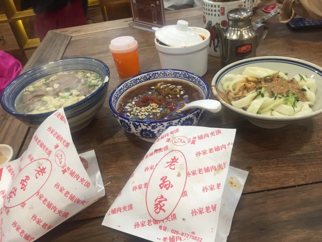 来到西安回民街上都会被一家家的美味佳肴所吸引,孙家肉夹馍就是其中一个,买的是牛肉的,肉不少,羊...无论你是不是回民,来到西安回民街上都会被一家家的美味佳肴所吸引,孙家肉夹馍就是其中一个,买的是牛肉的,肉不少,羊肉泡馍必点,汤鲜,羊肉也不膻