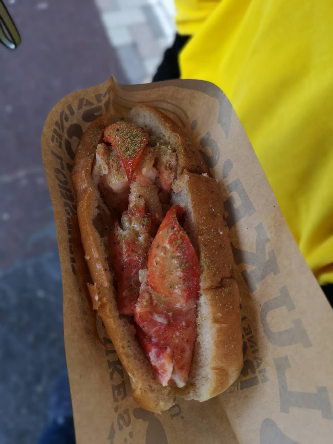 就在原宿饺子馆对面,吃完饺子出来突然发现可以顺便吃个网红汉堡。整体上离原宿地铁站不远,可以玩明治神宫,逛原宿顺便来吃。点了一个标准版,加税1060,不含税980。面包热腾腾,龙虾肉是冷的,吃起来有种奇妙的融合感。味道还是不错的,又方便又好吃,周一下午3点多去的不排队。