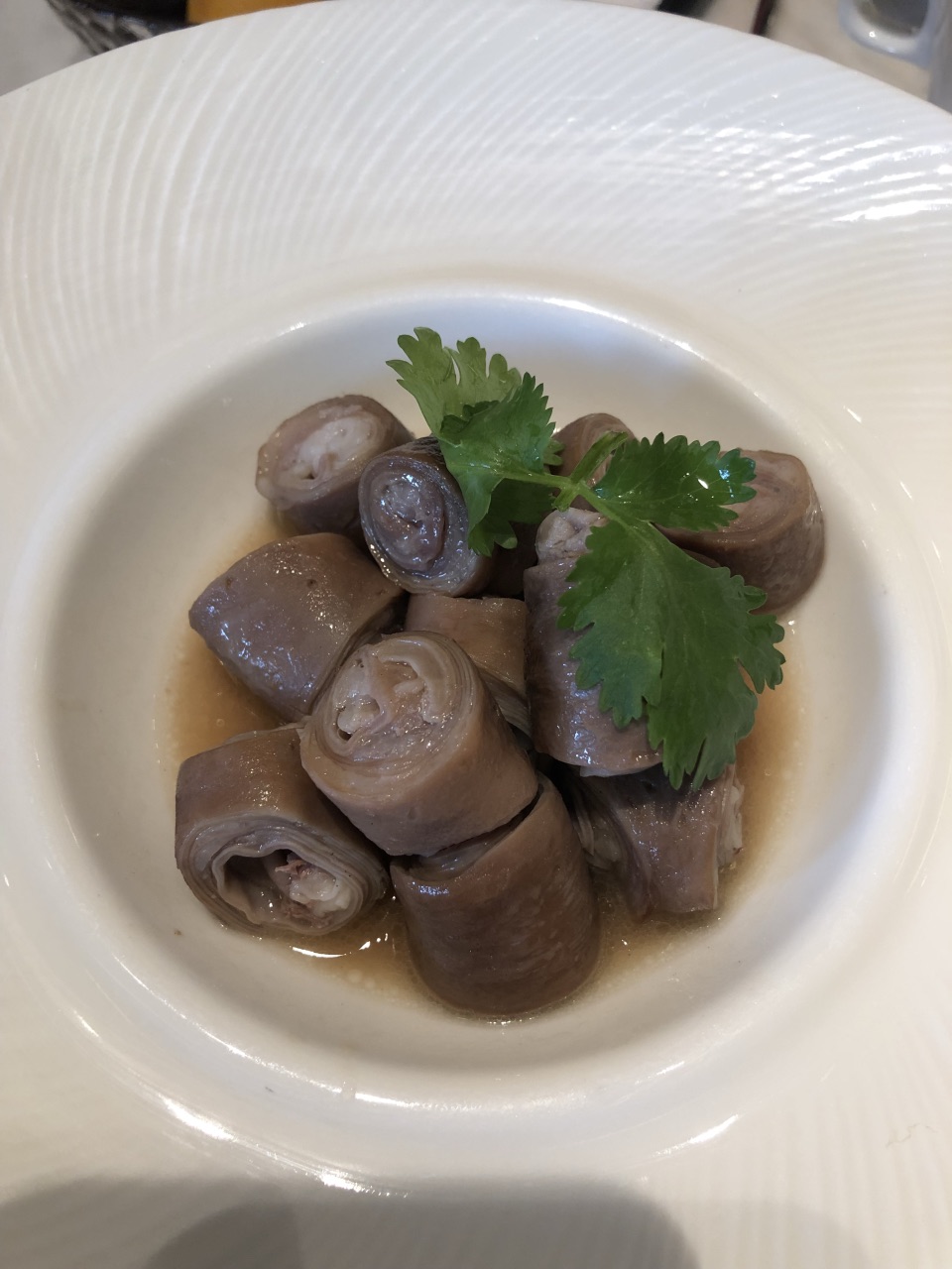 莆田是一家味道好价格亲民的米其林一星餐厅,主打福建和东南亚菜系,最爱扁肉汤,据说是鱼肉打浆做皮,包着细滑的猪肉糜,入口仿佛有脆脆的口感。蛏子系列是今天店家主推产品,蛏子个头不大,但是相当肥嫩;九转小肠还是推荐山东馆子吧!
