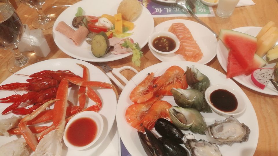 美团价格不贵,晚餐5点半开始,不能提前进入,现场买的话价格高不少,提前美团买好即可样式齐全,海鲜类的不少,其中一位服务人员态度一般,很生气。美团价格不贵,晚餐5点半开始,不能提前进入,现场买的话价格高不少,提前美团买好即可。