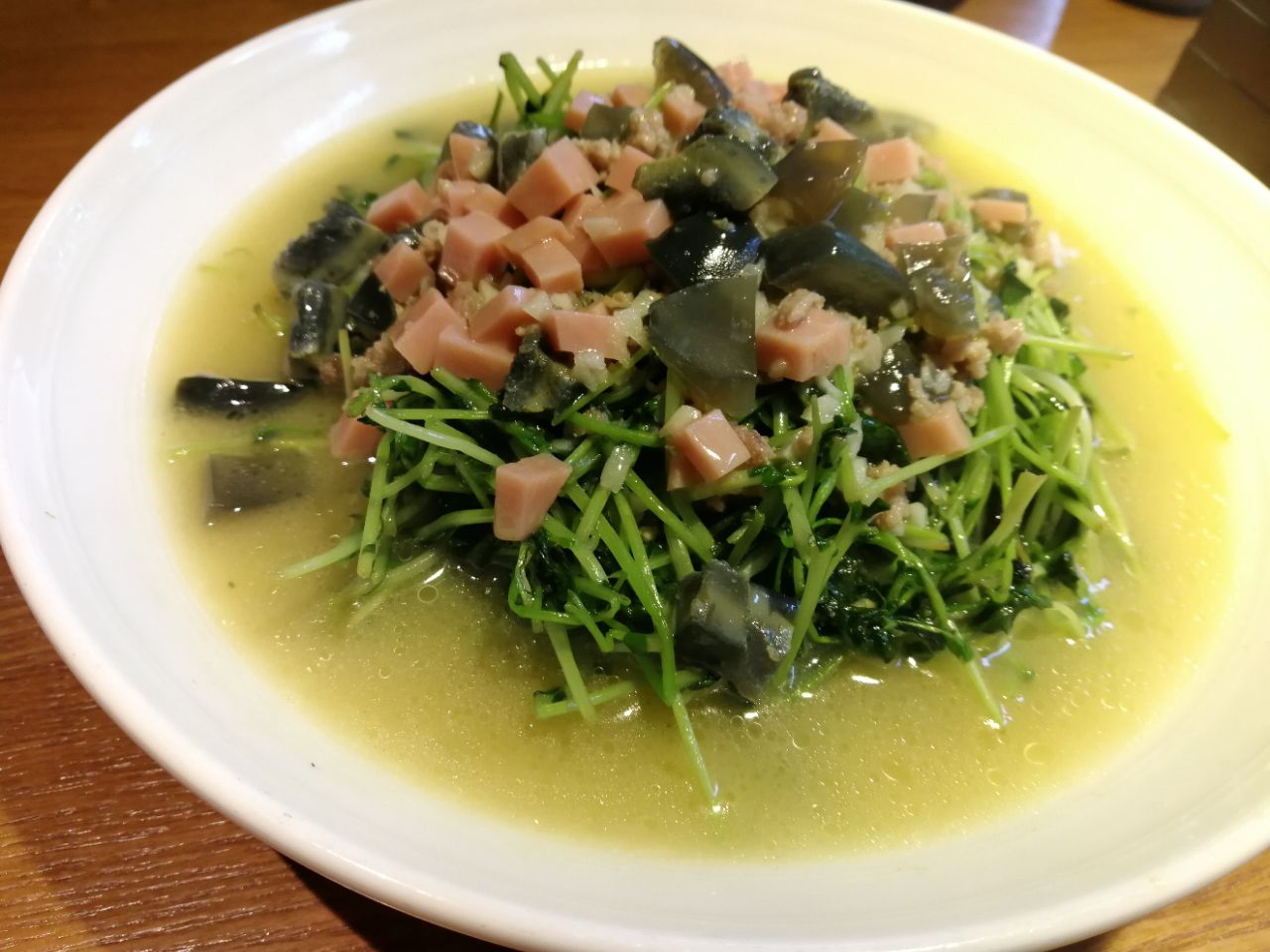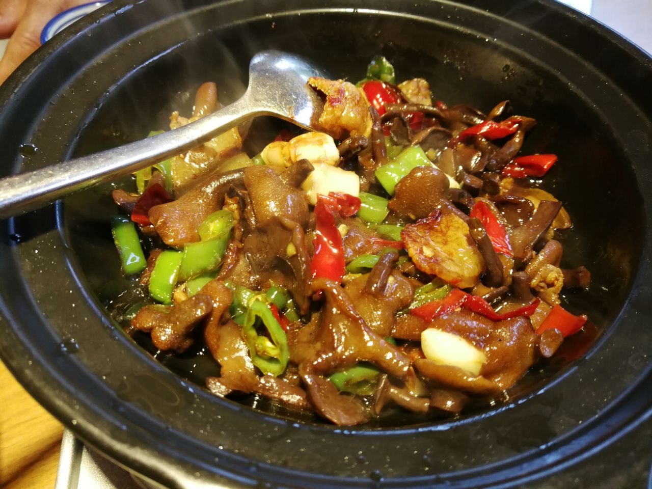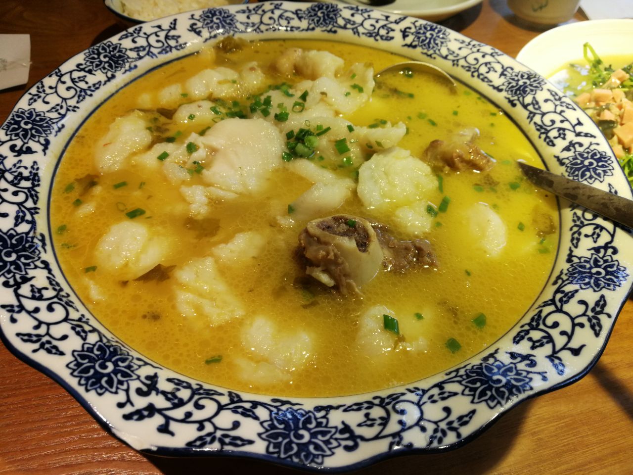 带着老妈在徐泾玩,路过这里看见大红灯笼高高挂很喜庆,那就一起进来尝尝。四点半后估计还没到饭头上故而店堂客人还不算多,整个店里好有民族风,湘江人民的风采,装饰很好看,一楼是卡座式,二楼是包房,特别有特色。二人就点了几个菜,推荐菜黄椒鱼头,新鲜而肉嫩,要了微辣,砂锅牛肝菌,菌类特别滑嫩,微辣,酸菜筒骨鱼,那么大一盆,骨头肉很大一块,鱼肉也是鲜美,再点了一个上汤豆苗,量大豆苗很嫩。整体微辣,吃的有点冒汗,服务员很热情给我们倒茶水,老妈说吃出在外地的感觉了,呵呵。
