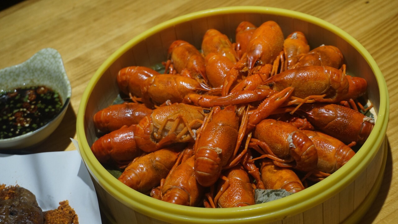 高鑫de龙虾馆,应天大街与恒山路口。 店内选用的是金湖的白腮清水虾,在店门口的养殖柜就能看到。 走的是工业海洋风,红绿相间的老式瓷缸,北冰洋搭成的桌椅,朴素又有趣。 鸭头,十分酥脆,KTV鸡爪,做的丝毫不亚于温莎的鸡爪。 冰醉龙虾,店家用了绍兴陈年花雕,虾肉带着一丝酒味。 飘着淡淡的酒香,虾肉经过冰镇变得更加Q弹,清凉爽口。 开胃番茄龙虾,真的好特别,味道简直了,微酸的口感带着一点咸鲜。 招牌蒜泥龙虾,强烈推荐,实在是太喜爱了,我在桌子上当着那么多人的面,不停吮吸着指头,舔。还为了蒜泥龙虾特意加了一份手擀面,蒜泥乳真的超级香,略带着一丝甜。