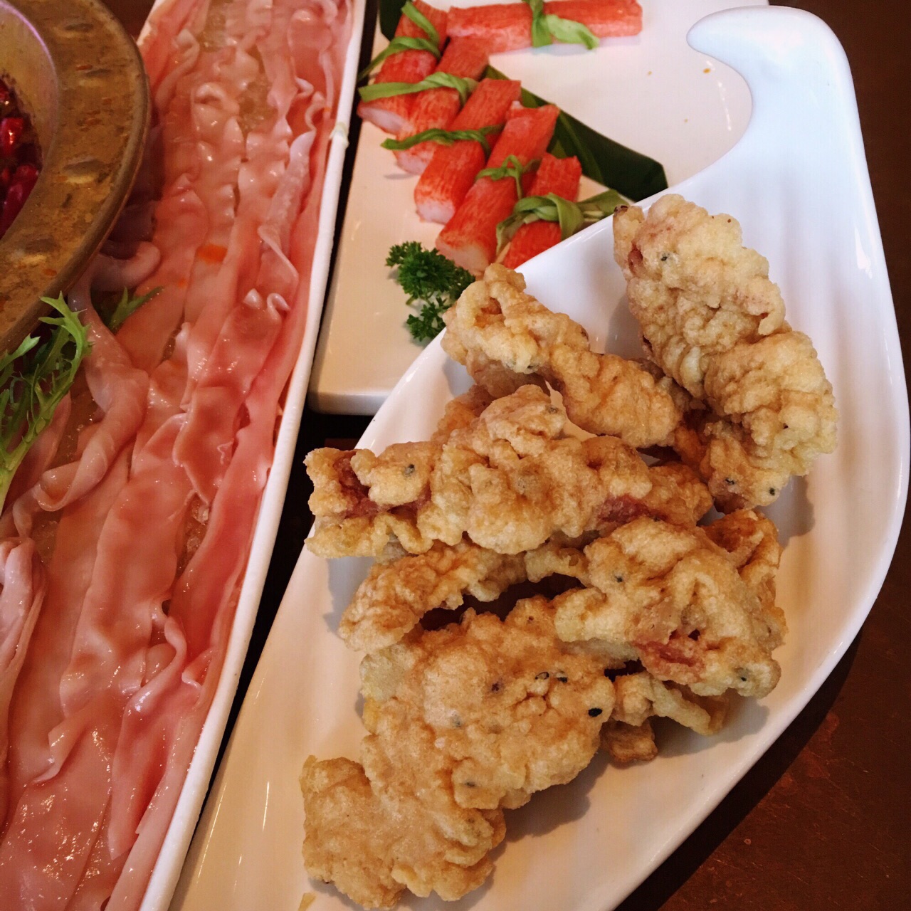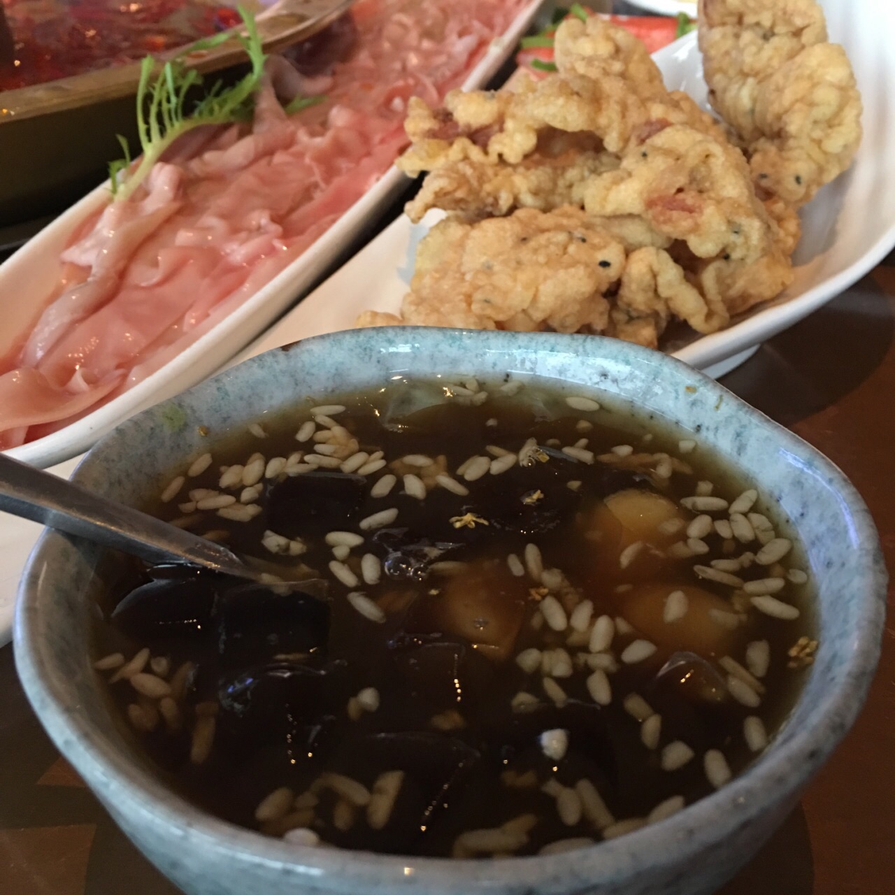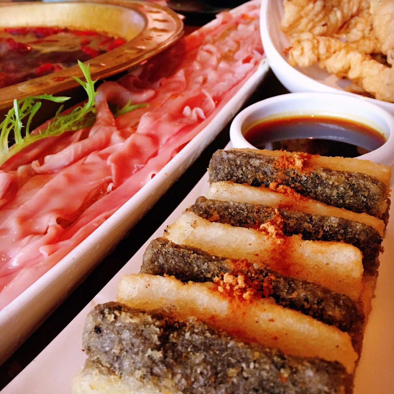 我与全世界就差一顿火锅️ 土火远看就像一团熊熊燃烧的『走』 既然来了火锅之都重庆必须走起啊 这家时尚火锅店自带可以看风景的露台 还未进店扑鼻而来的辣油香味肆意飞扬 九尺鹅肠粗略丈量一下跟胳膊差不多长 坐等开锅煮沸之时不妨尝几块现炸酥肉 看海味鲜海带芽和豆皮在水中群魔乱舞 论北海道蟹肉棒和虾丸在锅中谁煮沉浮 清新爽口的古作桂花小汤圆适合解解辣 美容养颜的桃胶莲子银耳羹可以败败火 哪怕从你的全世界路过依然放不下火锅