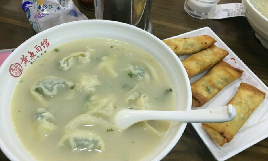 喜欢这家的黄鱼面,黄鱼馄饨,黄鱼春卷,还有他家自制的咸菜,都特别好吃散步走到蓝村路,又进黄鱼面馆,在大众点评上购买了一份套餐,黄鱼面加春卷。老顾客了,老板娘主动给多加了面条,一份套餐两人吃,太实惠了。喜欢这家的黄鱼面,黄鱼馄饨,黄鱼春卷,还有他家自制的咸菜,都特别好吃。