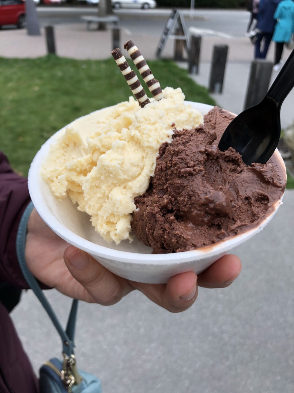 定价也是特别,1个球6元,2个7元,3个8元,所以人多蛮划算的自驾游经过瓦纳卡小镇,在湖边散步无意中看到这家小店,就在马路边上,面向Wanaka湖,风景也美。冰淇淋的品种蛮多的,口味偏淡,但很纯的感觉。定价也是特别,1个球6元,2个7元,3个8元,所以人多蛮划算的。
