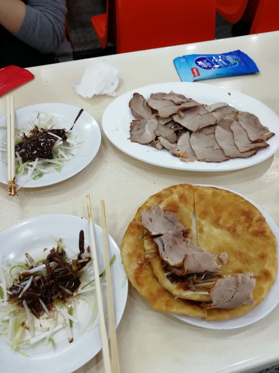 网友2018-05-12总店环境一般,味道份量感觉还不错!二个人点了三张饼,一盘熏肉,一锅酸菜粉汤吃的很饱,一共花费80元总店环境一般,味道份量感觉还不错!二个人点了三张饼,一盘熏肉,一锅酸菜粉汤吃的很饱,一共花费80元。比总店门口零售的熏肉大饼稍贵,门口的大饼熏肉片才10元一份。