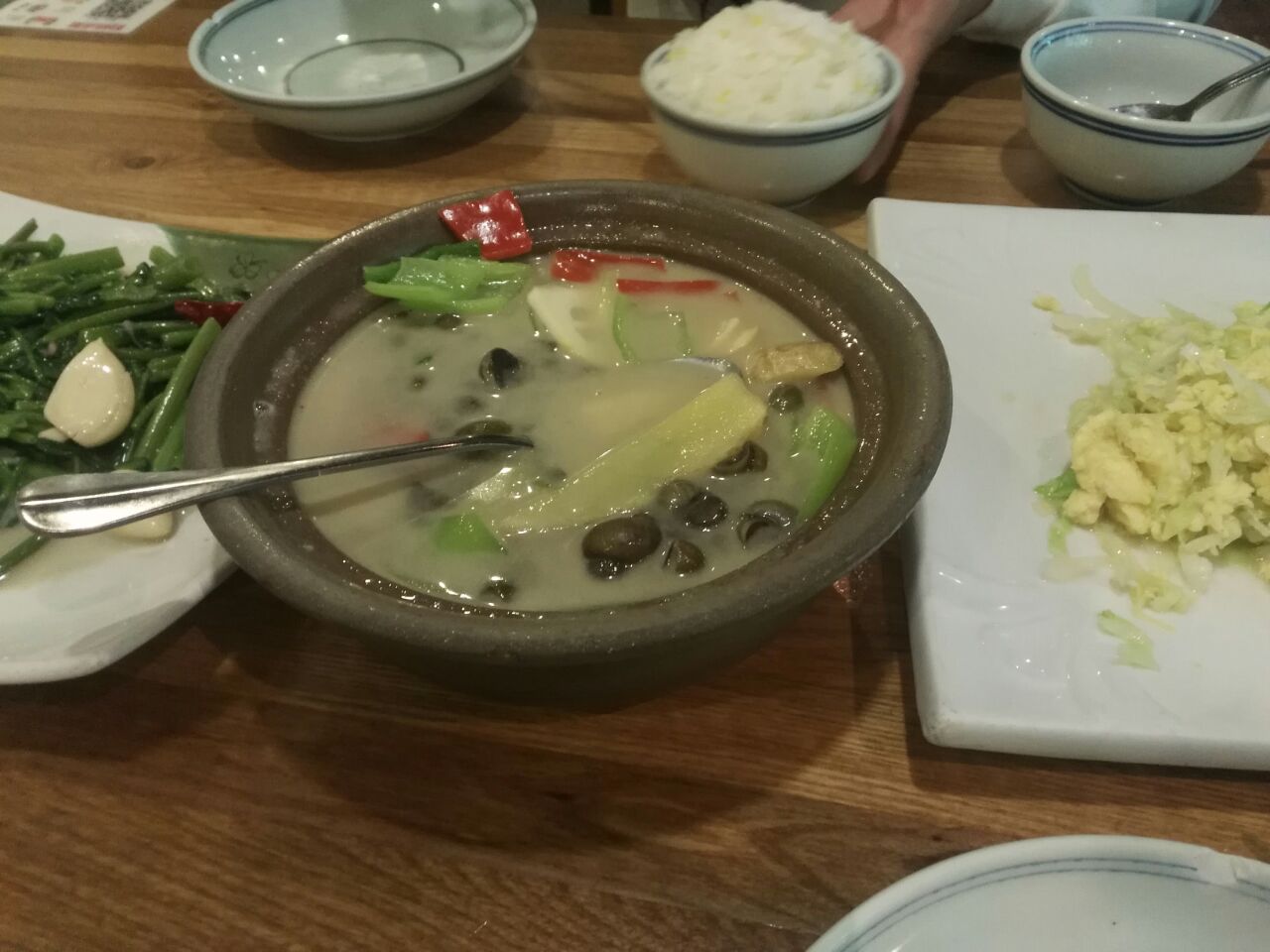 曾经的网红店,现在人也不少 在运河边,这个名字非常有韵味,只有餐厅,木有青年旅舍 点菜是败笔,点啥没啥,服务员会提醒有些菜做的比较生。墙上写满了各种善意提醒,服务马马虎虎 上菜速度还可以,量比较大。上汤螺丝可以当菜和汤两吃