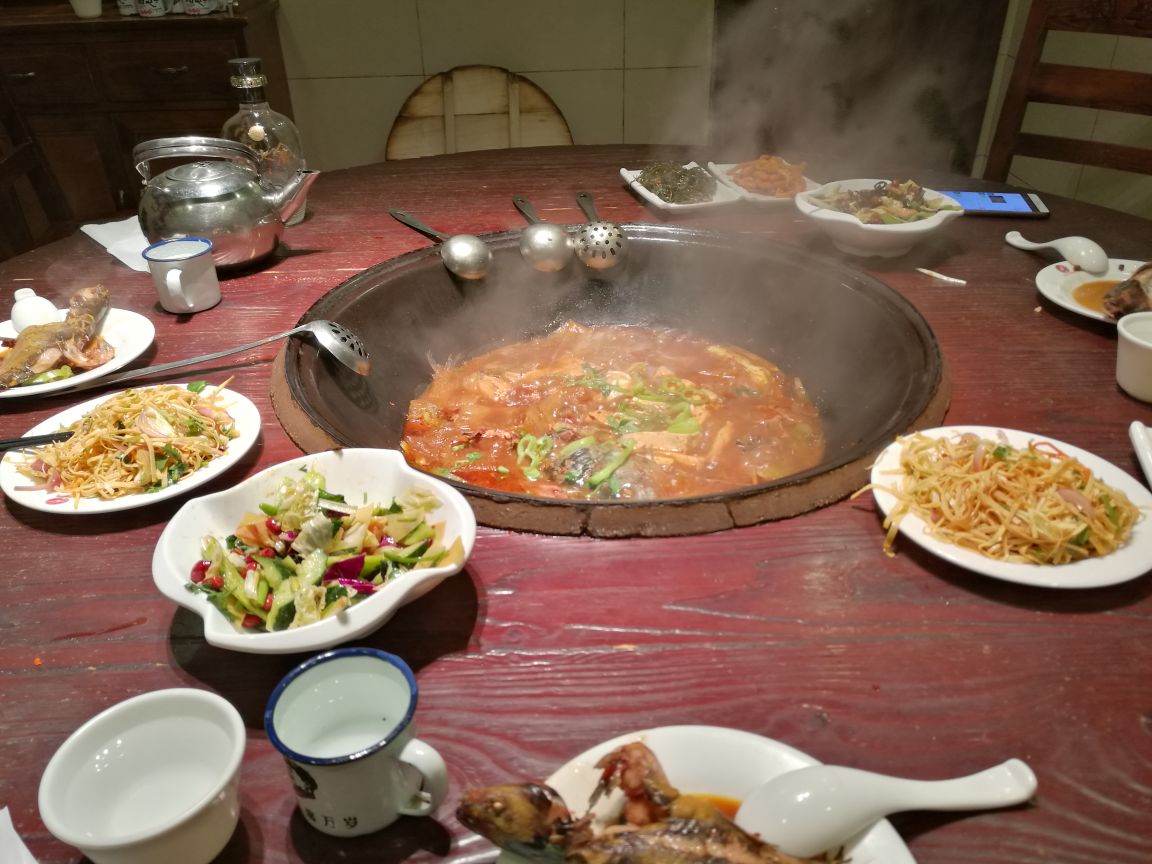 咱屯子锅台鱼采用两百年祖传秘制配方,以其独有的美味及新鲜、健康的精致手法,深受广大消费者喜爱。自2004年第一家店在吉林省四平市成立以来,迅速发展。 公司选用三江名鱼大鹅大雁农家散养小笨鸡为主料,现场宰杀,为顾客带来新鲜保证。顾客围锅台而坐,服务员将食材以及佐料放入锅中,现场烹饪,纯绿色炖制,原生态,健康养生,口感好。 到此处出差,在此就餐两次,第一次品尝锅台鱼,第二次去经咨询服务员,可以做东北乱炖,于是又品尝了一次东北乱炖,每次都令人唇齿留香,回味无穷。 服务员小云(姓云)的服务周到,为顾客着想,为酒店添彩,为其点赞。