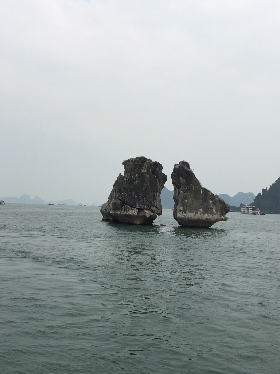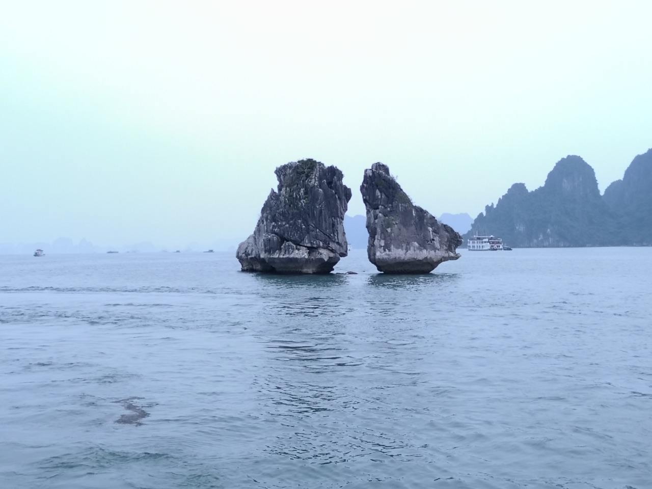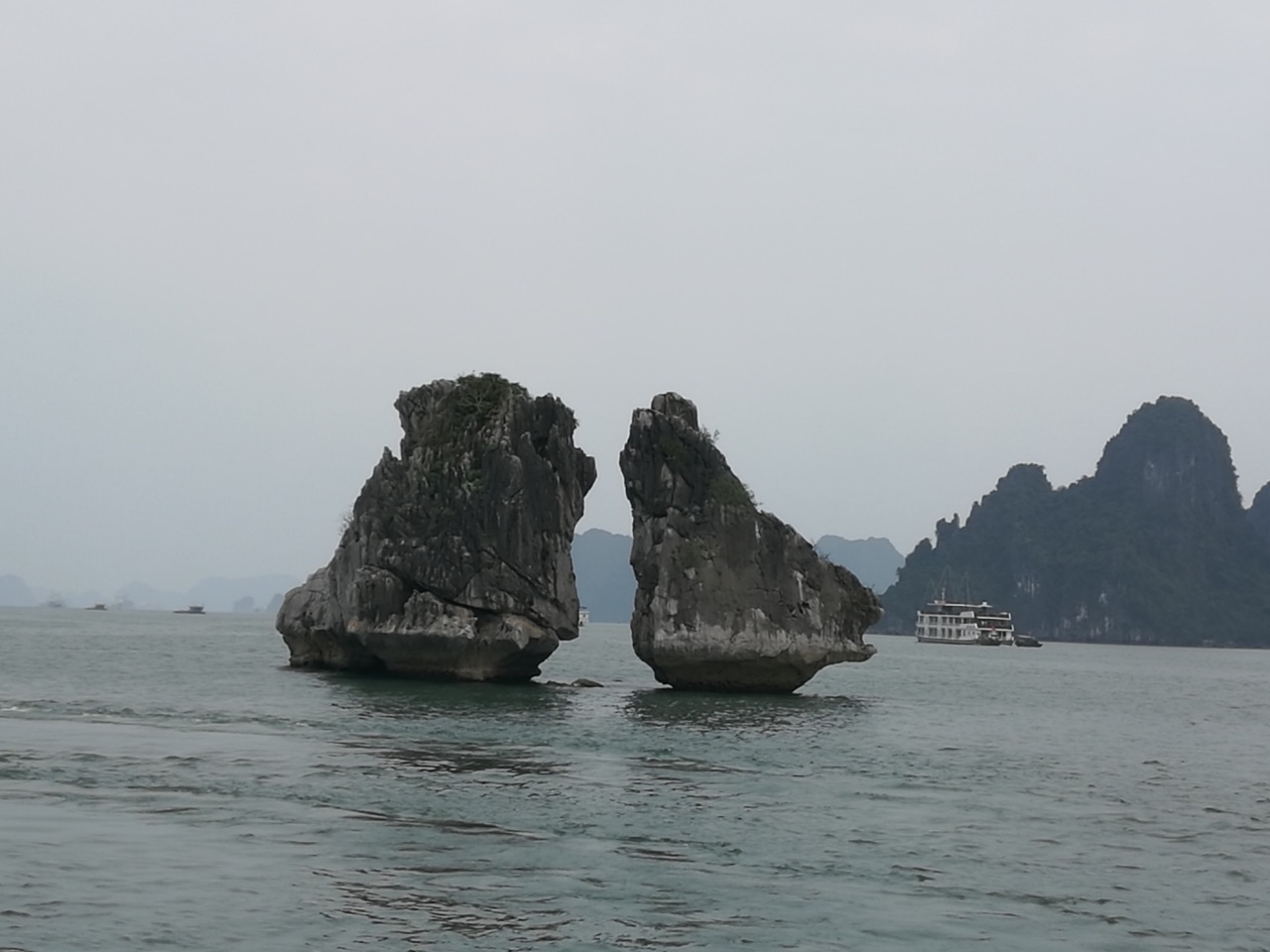 网友2018-05-13两个岛石是下龙湾的标志性景色了坐在游船上,各色奇石奇岛眼前闪过,前方出现了惟妙惟肖的两块石头,就像两个威武的雄鸡怒视着对方,像是厮杀前对对手的威吓。两个岛石是下龙湾的标志性景色了。