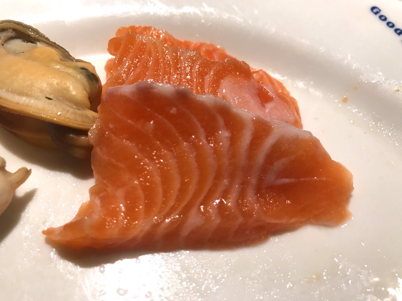 自打发现了这家多伦多,就真的变成了我的食堂了,一是便宜,二是食材新鲜,这次有红虾、扇贝很划算,青口贝偶尔有几个不太新鲜,烤肉类的不是我的最爱,大块的骨头看着过瘾但真的不是我的菜。嘿嘿,我只对海鲜感觉兴趣。 三文鱼:请大家关注一下!!!一直很喜欢吃三文鱼、不过上次写了一篇点评后,一位好心的朋友提醒我说:这里的三鱼文可能不是真正的三文鱼,只是红鳟!着实把我恶心到了,这次和朋友来吃饭我都不敢拿了,只取了几片,拍几张照片上来,请大家帮我看一下,也希望店家能真诚的回复一下,倒底你们店里的生鲜区出售的“三文鱼”是真正的三文鱼吗? 产地是哪里的?苏格兰、挪威、法罗群岛、加拿大、美国、澳大利亚、新西兰、智利? 请店如实回答!不要和我说什么淡水三文鱼这样的说法,食品工业是道德工业!是三文鱼就回答:是!如果不是就回答:不是!因为选择这些食材的大多数食客都是生食,而红鳟类的淡水鱼的生长环境达不到要求,是绝对不可以生食的!所以我很在意,相信大家也都很在意,这毕竟关系到身体健康! 请店家原谅我的执着,既然我消费了,也希望能明白消费,让自己踏踏实实吃的放心!
