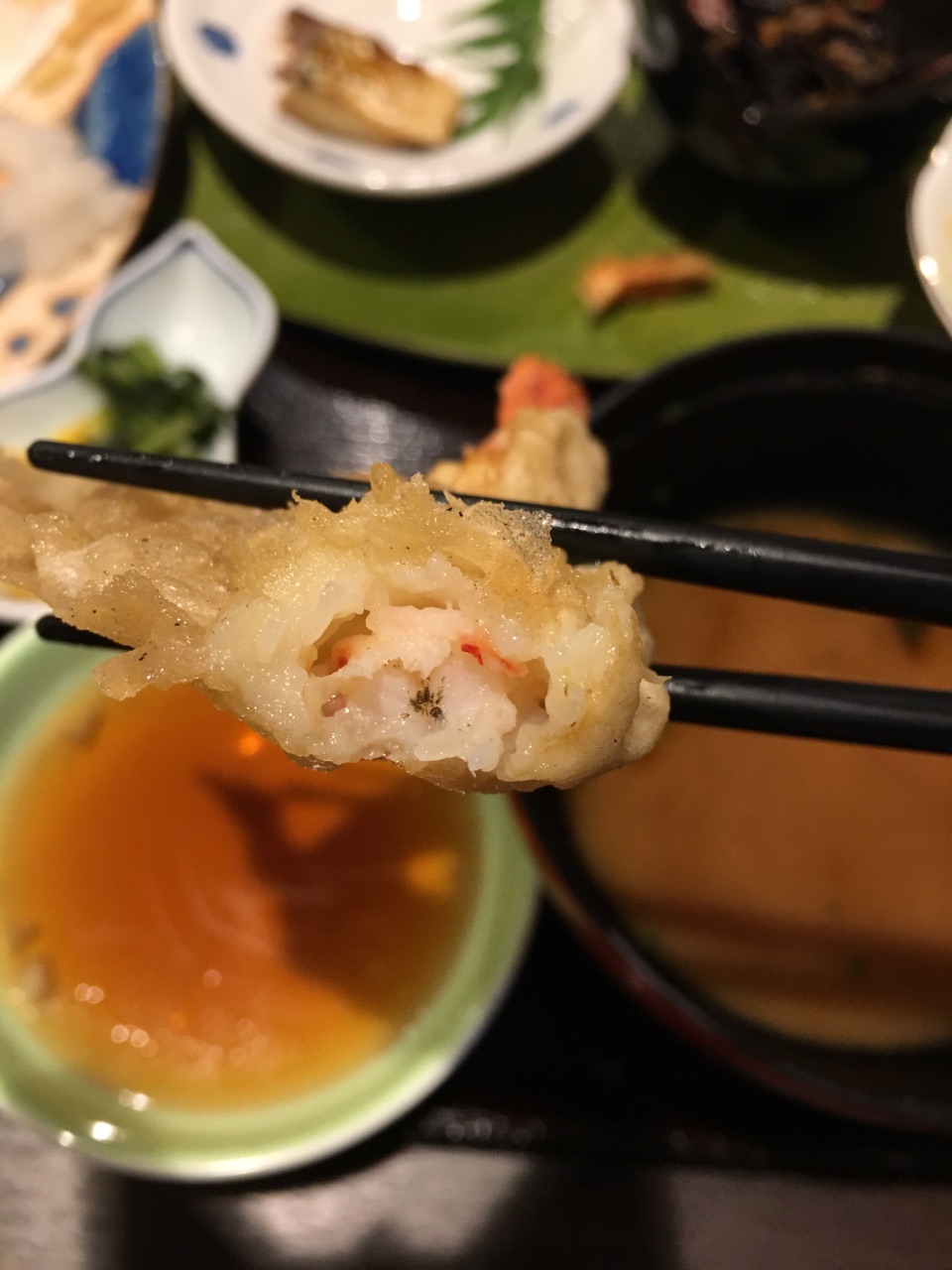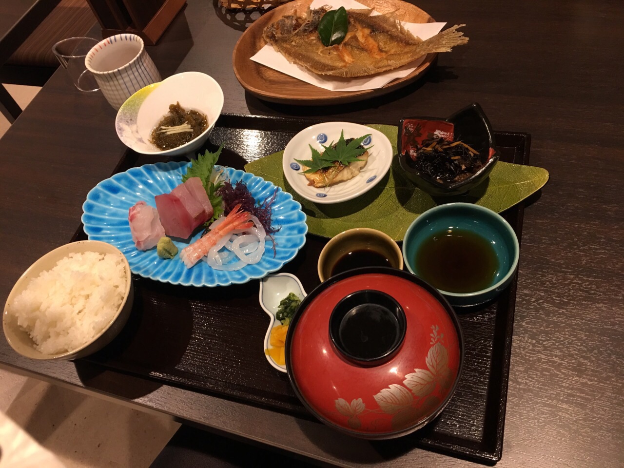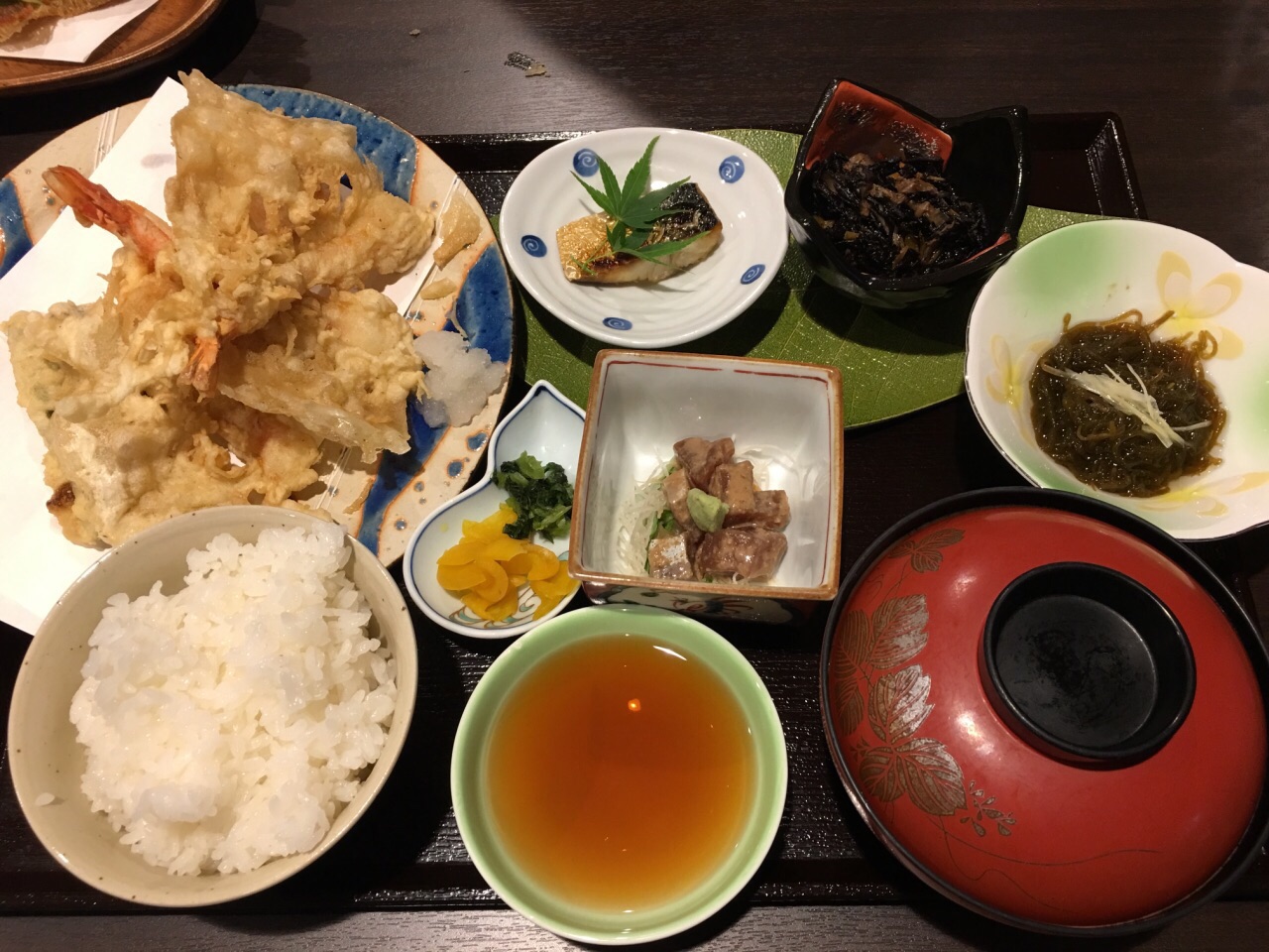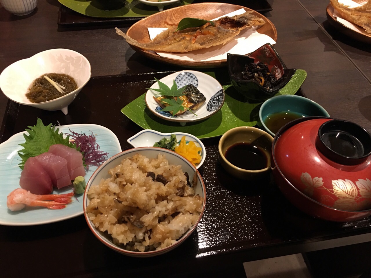 别府的第一顿餐,个人觉得味道不错。原店已关,换在旁边新地方。之前看到很多评价说是需要脱鞋盘膝而坐,新地方都是凳子,只有二楼一小块地方可以聚餐的时候体验。 点了不同的定食,都不错,很合算哎。天妇罗虾没有传说中的那么好啦,反正我觉得不敢大。炸鸡小吃好吃,炸的很嫩,可能油多吧。 总体还是不错的店,至少来了别府还是要尝一下的。