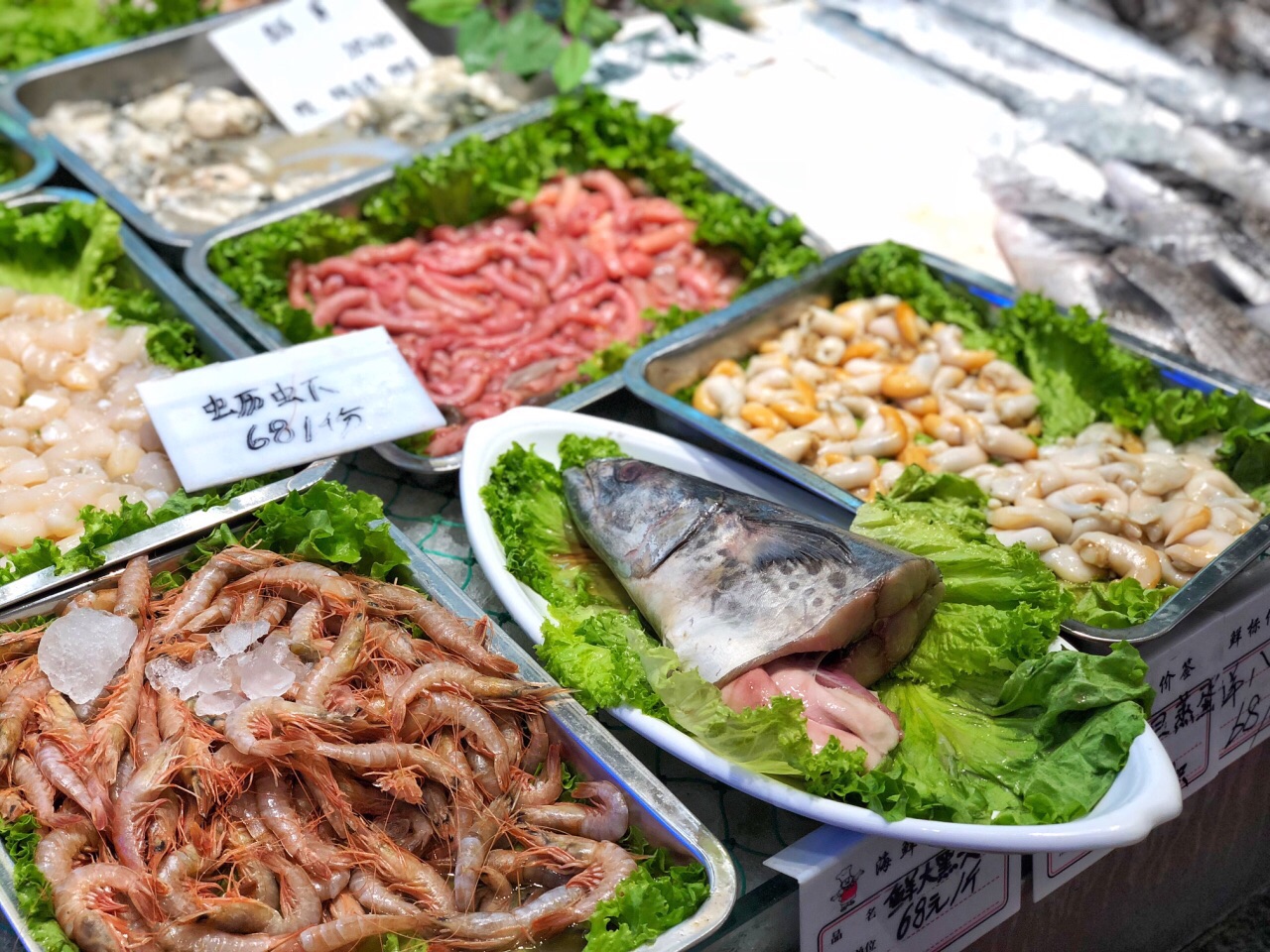 ☺︎ 5.3 总感觉周三过了,这周很快就到周末了 小伙伴约起来吃饭饭吧 这家海鲜菜馆正好还没有吃过 话说这家好大啊 门头就好长好长,好气派 一楼可以选菜 各式新鲜海鲜都超想吃 可选的菜好多好多,都好有食欲 二楼包间的装修,文艺小资 环境棒棒的 最喜欢吃的要数炸肉 鲜香脆,敲好吃 其他海鲜味道做的也棒棒的 吃完马上想推荐给其他小伙伴 而且这家的菜价格也适中