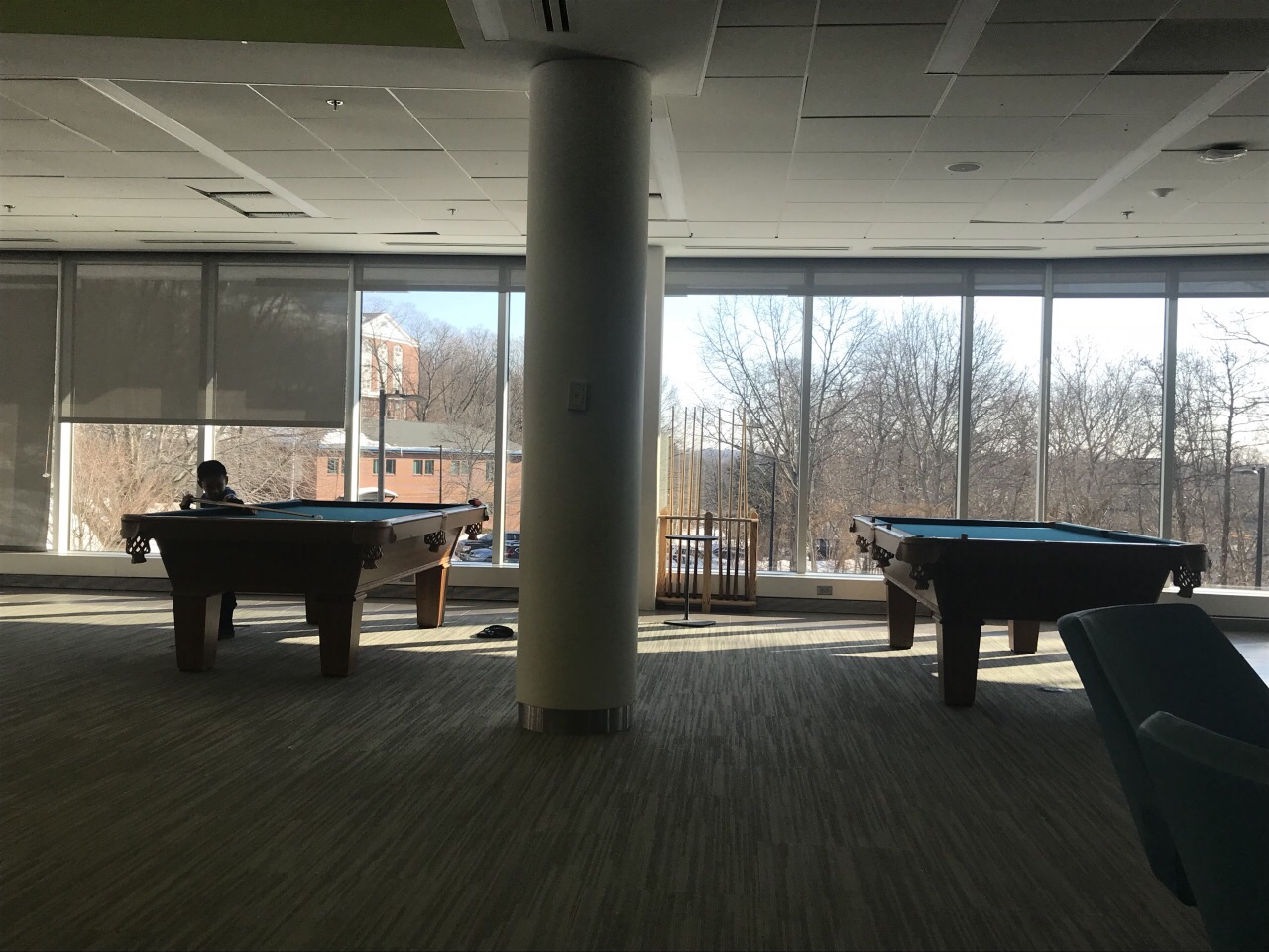 网友2018-05-17商科著称院校,会计专业很厉害,就业服务很好,有去哈佛的shuttle bus在一小山上,硬件据说在美国也算很不错的。图为图书馆前雪景,学生活动中心台球桌,钢琴室,以及阳台上取暖的椅子。商科著称院校,会计专业很厉害,就业服务很好,有去哈佛的shuttle bus