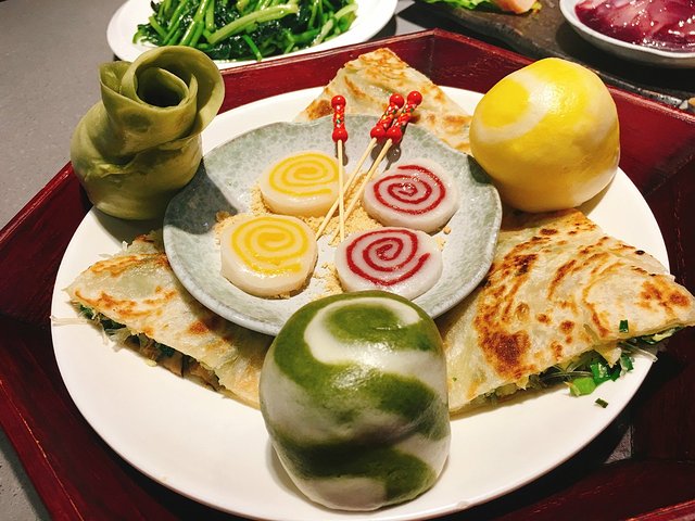 和盈台湾料理,是家在东方路开了好几年的台系餐厅,广兰苑宾馆的一楼,交通便利,附近有很地铁和很多线路的公交车站,东方路峨山路站下车,步行约100米就能到达,远远的就可以看到小肥羊火锅的招牌,而和盈就在同栋楼的1楼,左右2边各有一个餐厅,左边一间位置比较少,以方形长台为主,右边餐厅空间更大些,以沙发卡座和圆台为主。 和盈台湾料理主打地道的台湾美食融合魔都本帮口味,采用了最新鲜的食材用最简单的烹制手法,在保证原汁原味的基础上为魔都的食客精心打造出一道又一道家常美味佳肴: 比如特色菜浓郁鲜辣的红火鱼头,夹一块鱼肉沾点汤汁,味道鲜美; 金元排骨搭配了老上海的辣酱油,第一口咬下感觉像是上海美味炸猪排,但是肉质更厚实,煎炸之前有用台湾的调料特别腌制过; 精美可爱的花式点心有咸有甜,当中一圈是用糯米制成的,搭配香甜的花生粉,软糯适宜 外圈的花朵其实就是各色小馒头,玫瑰花型的没有内馅,可以沾搭配的炼奶一起享用。其它2款是有豆沙馅的,不是很甜,最外圈是韭菜煎饼,香香的味道让人忍不住就想咬上几口, 菜品不仅美味而且价格适中,中午时段来餐厅吃饭的客人还真不好,果然酒香不怕巷子深。