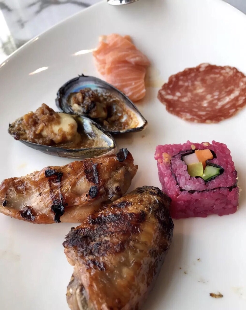 本来就没有对星级酒店自助餐厅的餐饮抱太大的希望,然而,一顿中午自助餐之后仍然感到失望。侭管看着菜品挺丰富的,中式日式西式甜品都有,为什么没有一款菜品的味道能让人满意呢?年糕汤的汤水太过寡淡,海鲜贝类蟹类的肉质不鲜嫩,小牛排烤得太老,甜品小蛋糕感觉不新鲜,甜到发腻。主厨水准亟待提高啊!
