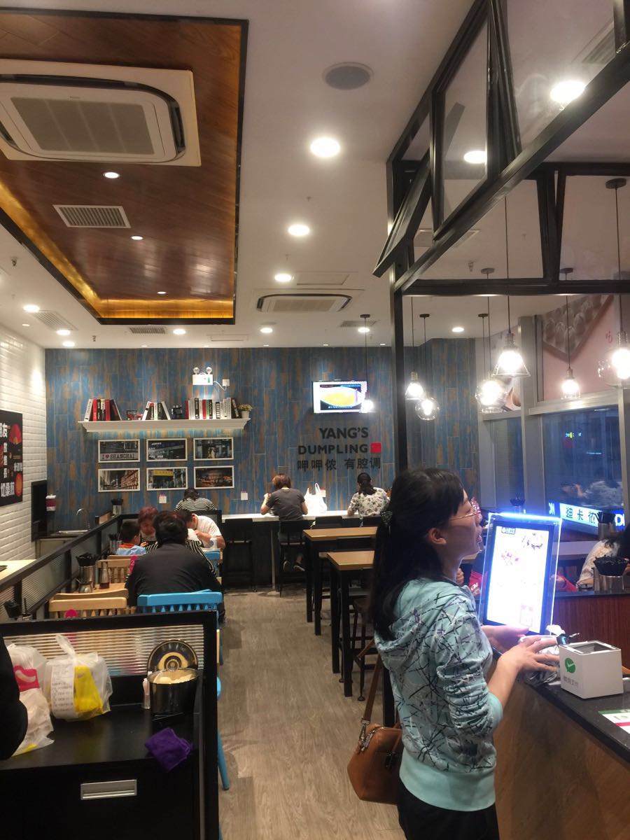 5.20.美食节,抢到了小杨生煎一份虾仁生煎和大骨粉丝汤优惠券,虽来到了百联西郊二楼的小杨生煎店,品尝这份美食。 有一段时间没有来该店了,已经重新装修过,环境比以前时尚了些,服务员似乎也作了调整,进门后总体感觉不错。 向收银台出示了订单后,就开始品尝就餐了。虾仁生煎似乎比以前也做得更好一些,饱满,有汁水,既鲜又香;大骨粉丝汤,不但大骨充满着诱惑力,粉丝也比较滑爽,且味道鲜美。