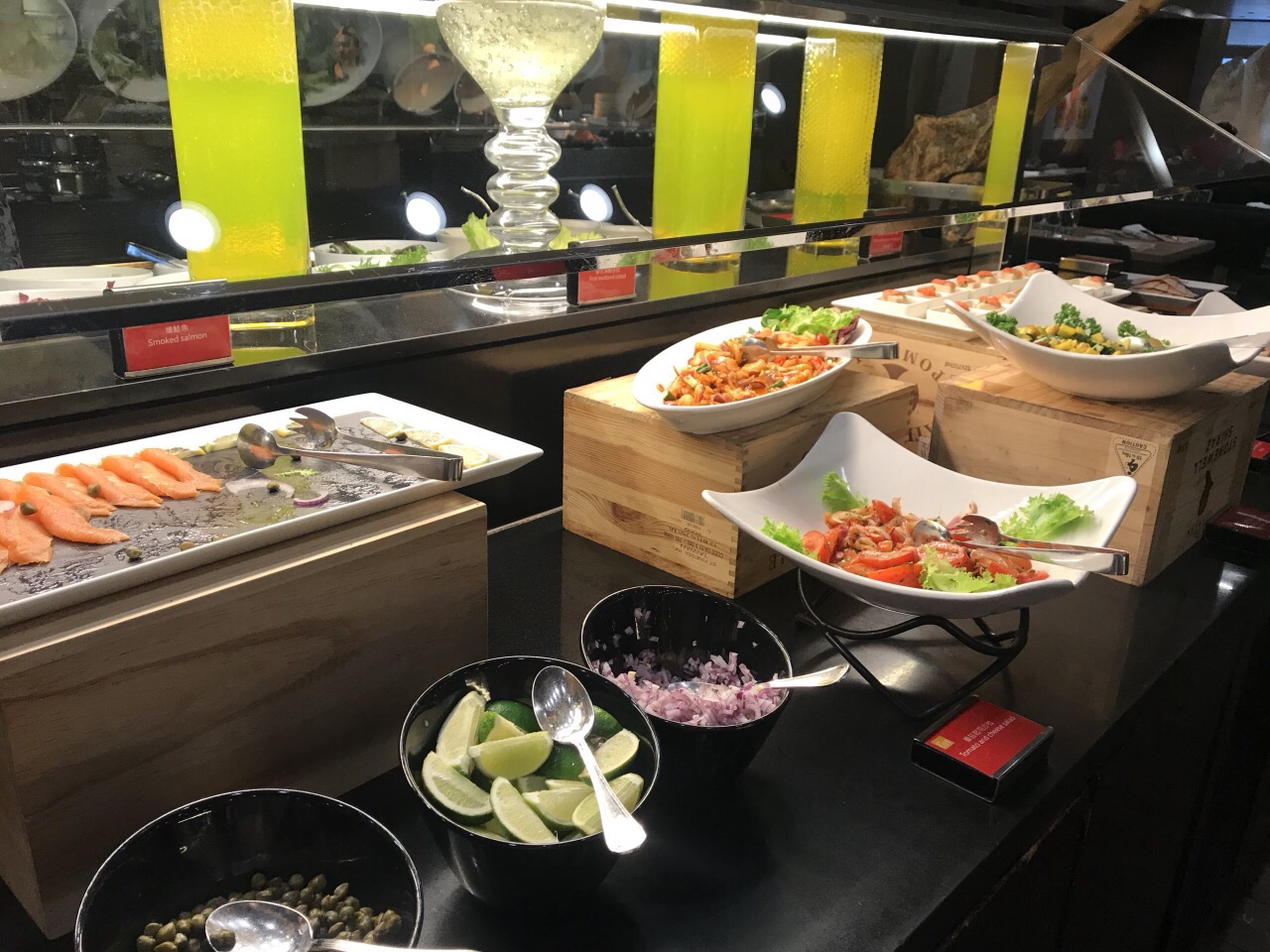 此外,有主題週時,菜色會有較大變化,但價位上不是很親民,平日午餐比晚餐價格便宜,相對較划算以自助餐廳而言,餐點選擇樣式多,而且質量還不錯。此外,有主題週時,菜色會有較大變化,但價位上不是很親民,平日午餐比晚餐價格便宜,相對較划算。