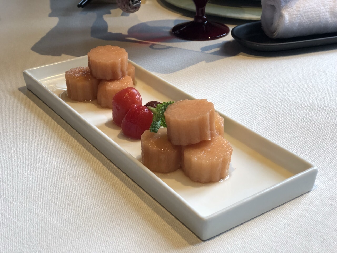 外滩新开的黄浦会,做得一手好粤菜,当然点心肯定是特色,外面没有的避风塘虾饺,外面是避风塘的做法,里面有多汁的虾仁:#话梅汁浸泡的山药# 十分入味,我敢说不爱吃山药的人都会爱上这道菜。 因为入口只有软糯和清甜,旁边的小番茄也很好吃~ 在闷热的夏天,可谓是一道沁人心脾的开胃菜。 黑椒野菌牛肉粒 上好的和牛品质的牛肉,配上野菌蒜片也是很有特色,一口鲍鱼酥不必多说,还把鲍鱼切成了3份,吃起来方便,然后一个香煎琵琶豆腐也是必点的,味道很棒,外酥里嫩得,点心的吉士煎堆,杨枝甘露,等都是特色点心~值得去拔草。印象比较深的还有门口的糖艺大师