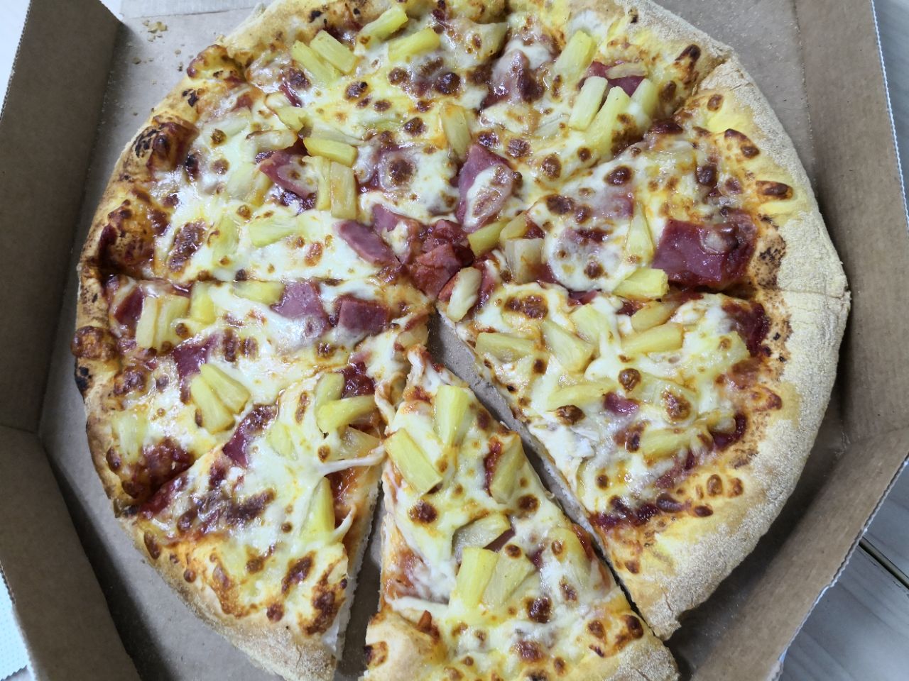 ...个蔬菜色拉,只有晚上有哦,上次中午叫的时候打电话来说没有,还有奶油蘑菇汤,就这点了,吃撑了,唉加班叫了达美乐披萨的外卖,这家店是一直吃的,这次要了菠萝培根披萨,一个蔬菜色拉,只有晚上有哦,上次中午叫的时候打电话来说没有,还有奶油蘑菇汤,就这点了,吃撑了,唉