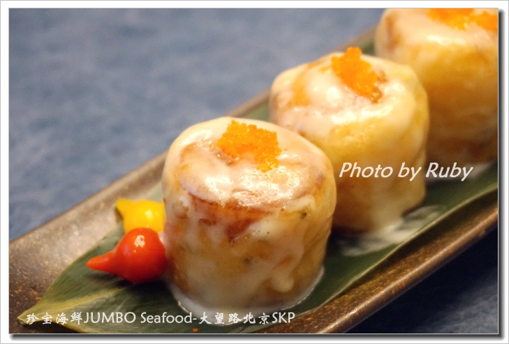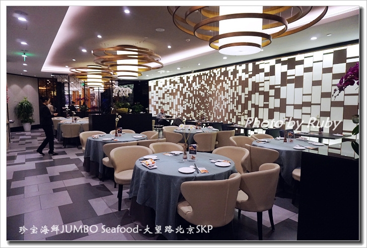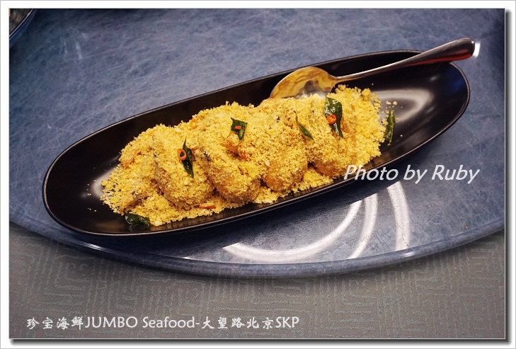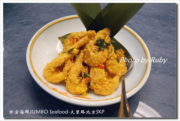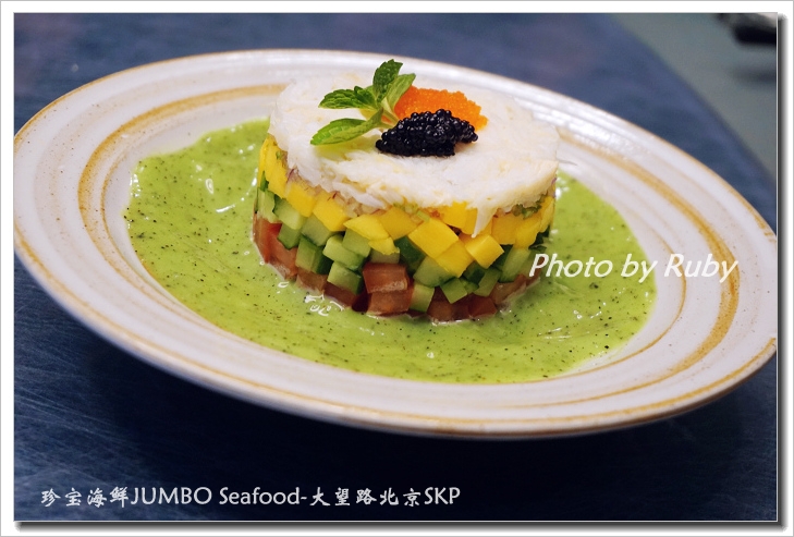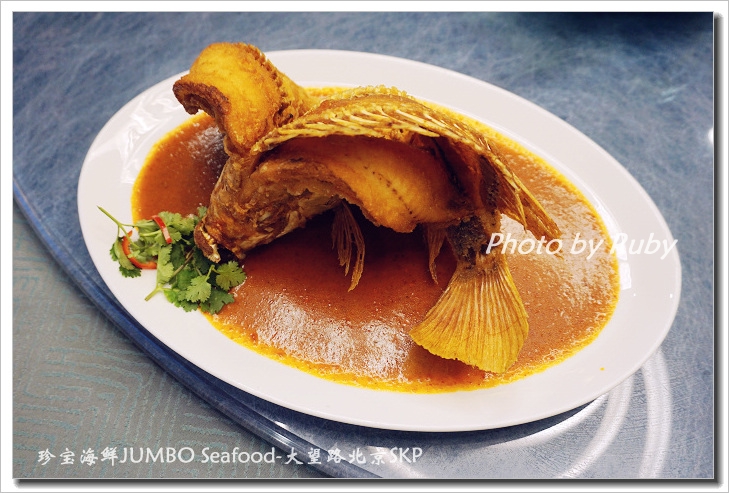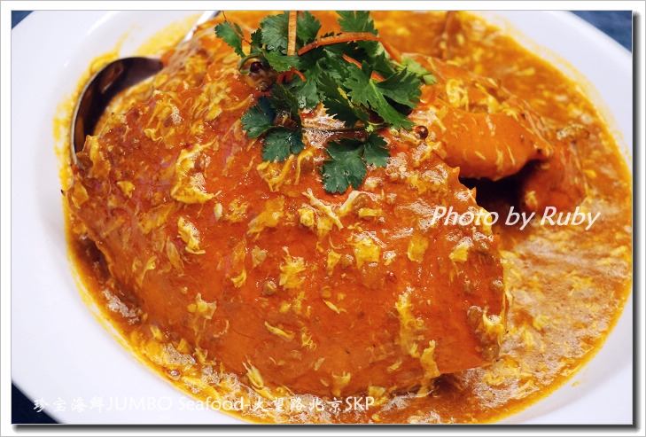 和朋友聚会去的他家,去之前做了下功课,原来是新加坡风味的店,是新加坡本地的珍宝海鲜开到的北京,以辣椒螃蟹为招牌菜品,主打新加坡味道的海鲜,特点是鲜、甜。交通也比较方便,店在大望路北京SKP里,地铁1号线、14号线大望路站下来,走过去不用10分钟。他家在北京SKP的6层,在一个扶梯的一角,门脸挺大的,是种透亮大理石般的黑色系,有种华丽感,门外长长的海鲜鱼缸,好像一个小小的蓝色海洋,活的海鲜们在里面自由的游弋,很生动。店里挺大的,整体装修风格是高雅又舒适的,我们坐的包间,空间不大,但有些雍容感。 吃的方面,点了麦片虾、新加坡娘惹炸彩虹鲷、潮州卤鸭、鱼子酱蟹肉芥末沙律、香酥鸭、鲜菌翡翠豆腐、海鲜皇炒饭,还有招牌的辣椒螃蟹,整体感觉食材品质很好,味道上异国风味浓郁,甜辣咸香的味道与国内菜系都很不一样,感觉特别又可接受,特别喜欢娘惹酱的味道,酸酸甜甜辣辣的。辣椒螃蟹用的大青蟹,个头儿真大,钳子上的肉肉很厚。服务方面,服务挺好,会及时续水,菜品大块的,会帮忙处理成小块,方便客人食用。总的来讲,是家有品质有味道的新加坡特色的海鲜店,特别现在青蟹有特惠,感觉性价比还挺高的。