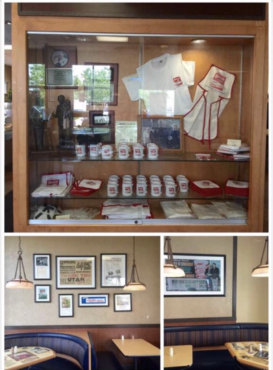 这里的KFC是全世界第一家肯德基,也是KFC的一个小博物馆,有很多早期报道,还有原版白西装哦。让人们了解,哈兰山德士上校是如何用一只鸡,改变了世界的。餐厅还是之前最早的Logo!这样的Logo在国内已经看不到了,瞬间让我回到了20年前,感到分外的亲切!门前有山德士上校的铜像,另一位大概是他的合作人。店内有很多山德士上校的照片,还有当年第一台炸锅。虽然KFC的分店已经遍布全球了,但走进盐湖城这间KFC,才感觉到这里的确与众不同,这间餐厅到处都弥漫着KFC文化。味道依然还是那么美味!还吃到了在国内早已停售,已经吃不到的菜丝沙拉!