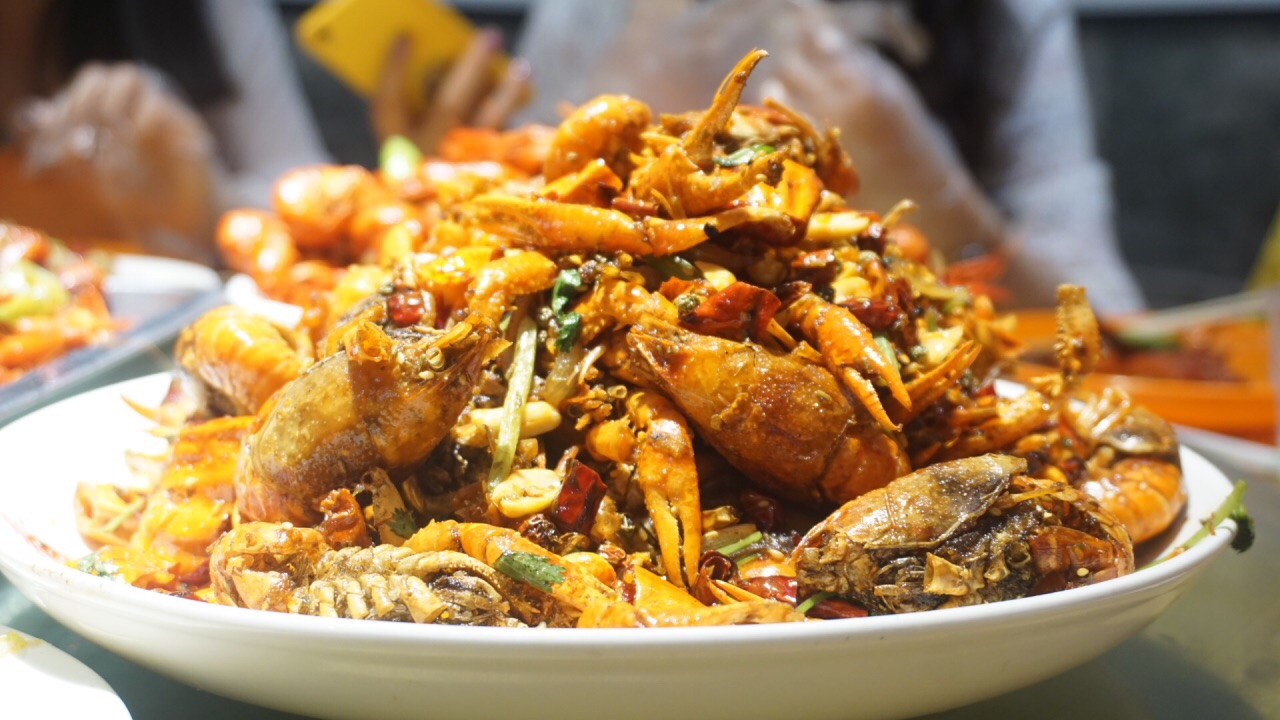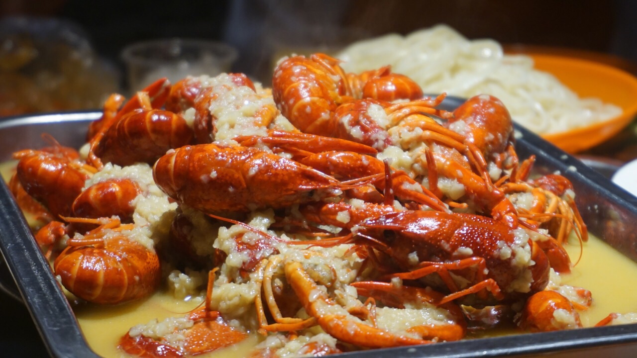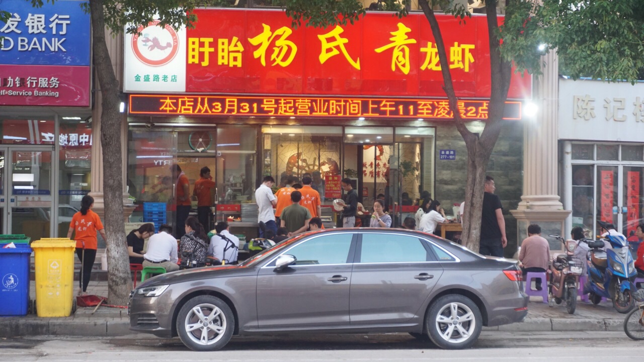 杨氏青龙虾,今年第二次来了! 之前去的竹山路店,这次来了同事家旁金盛路总店。 生意真的好到爆,门口排满了人,路边上还有好几桌。 吃龙虾最爱的点的凉菜:盐水毛豆 盐水花生。 香辣螺蛳,蒜泥龙虾,干煸龙虾,必点。 咸蛋黄娃娃菜,好特别。