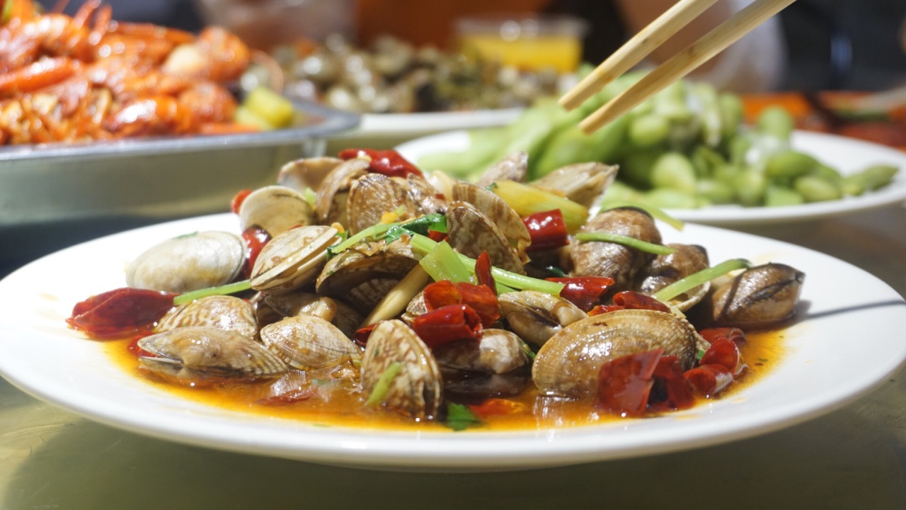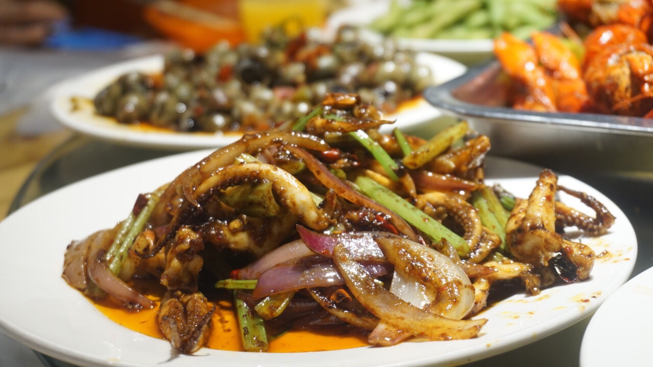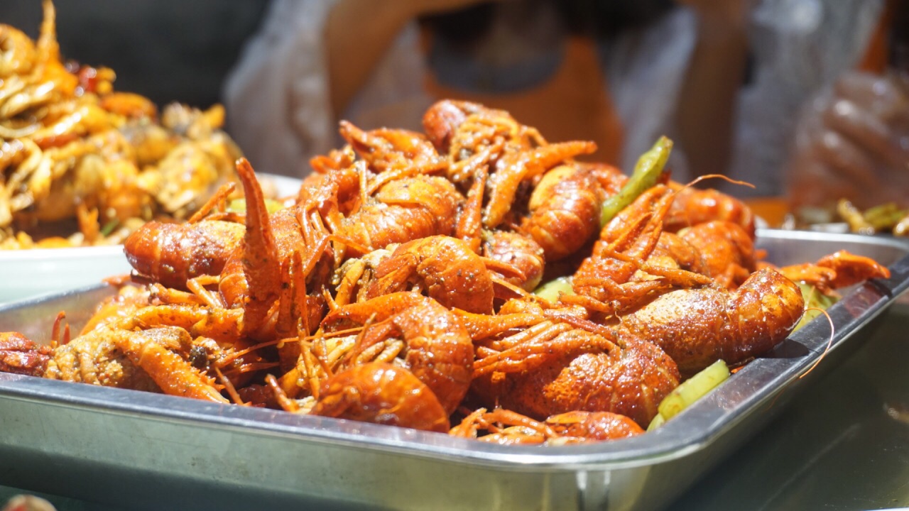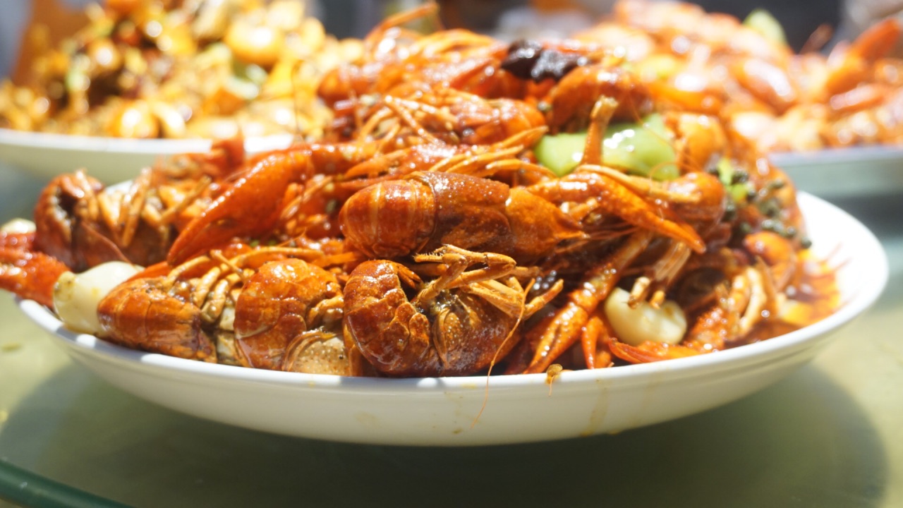 杨氏青龙虾,今年第二次来了! 之前去的竹山路店,这次来了同事家旁金盛路总店。 生意真的好到爆,门口排满了人,路边上还有好几桌。 吃龙虾最爱的点的凉菜:盐水毛豆 盐水花生。 香辣螺蛳,蒜泥龙虾,干煸龙虾,必点。 咸蛋黄娃娃菜,好特别。