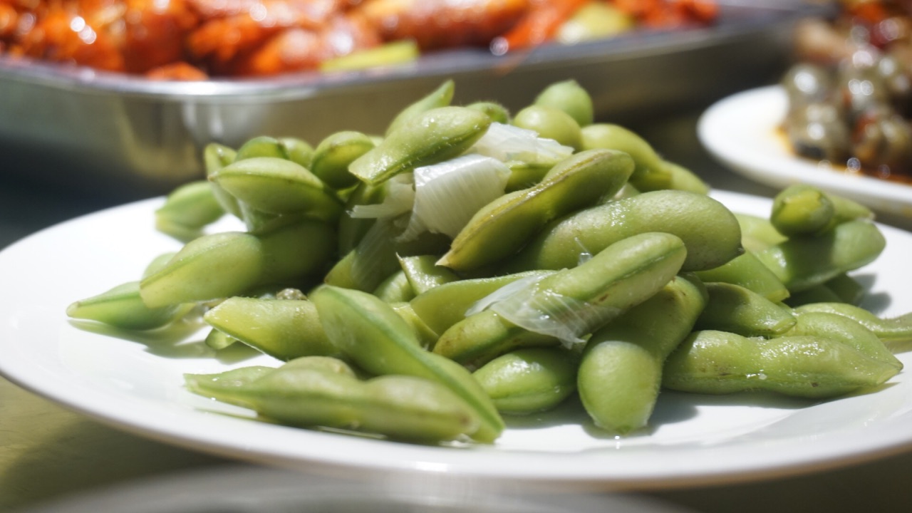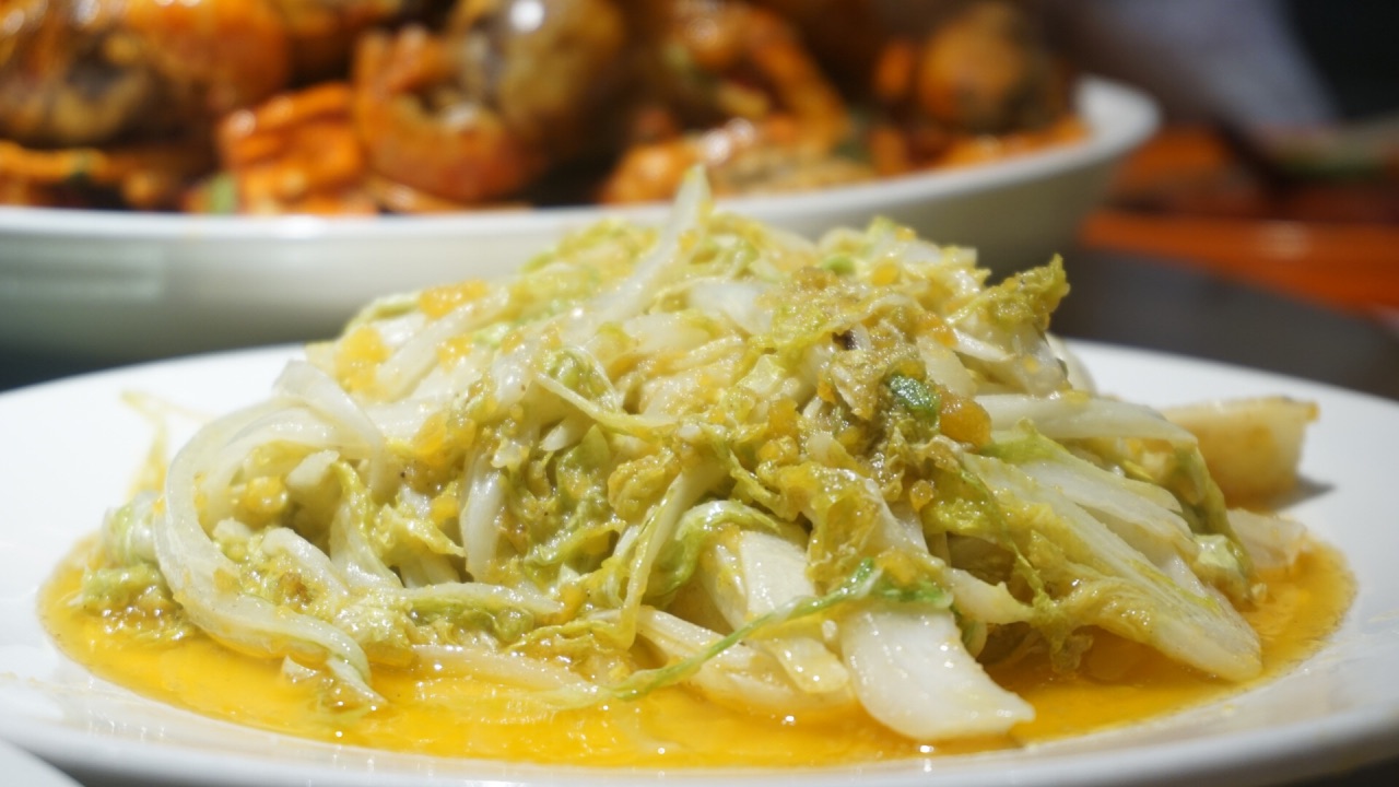 吃龙虾最爱的点的凉菜:盐水毛豆  咸蛋黄娃娃菜,好特别。杨氏青龙虾,今年第二次来了