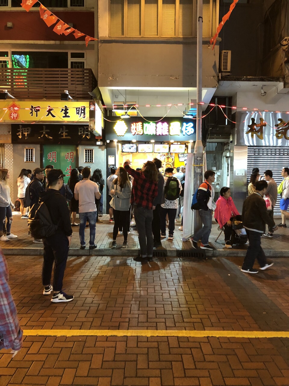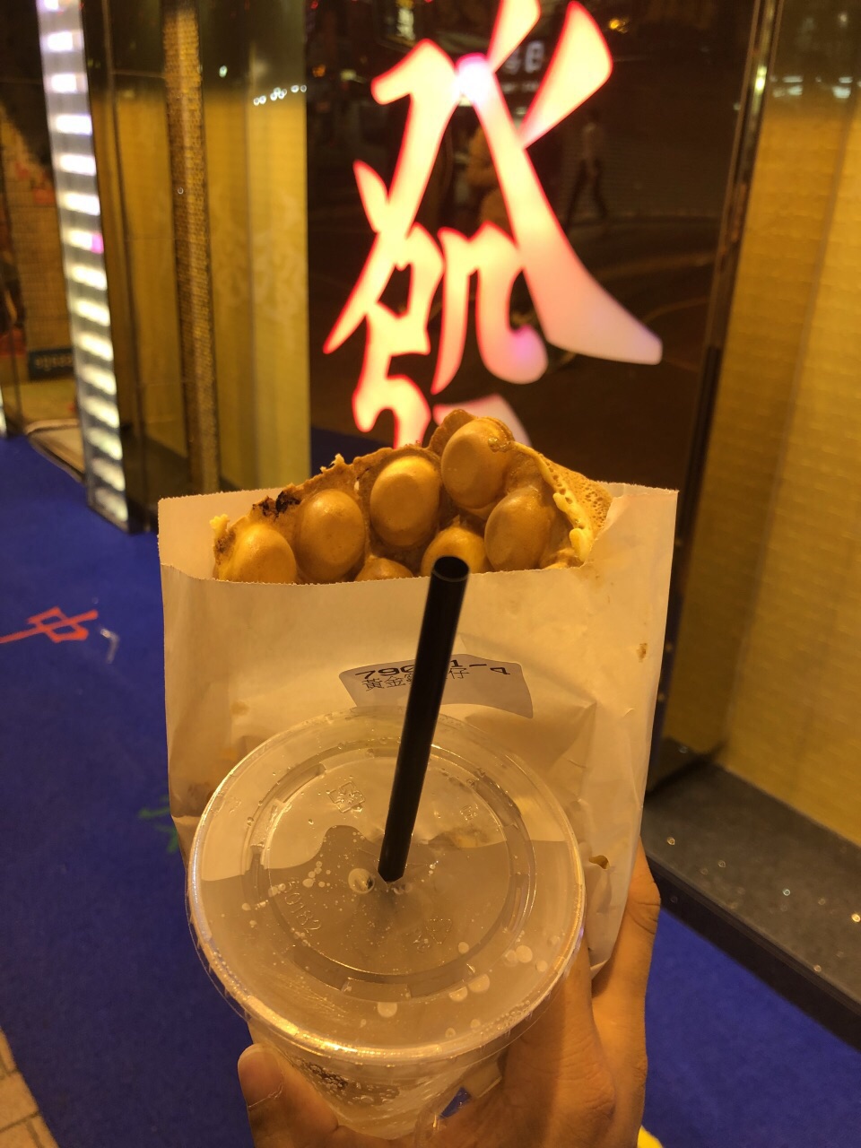 米其林街头小食,慕名而来。 排队的人非常多,等了个把小食才拿到鸡蛋仔。 吃了这家的鸡蛋仔才发现以前吃的是什么鬼。 黄金鸡蛋仔33,非常好吃,鸡蛋仔里面还夹有流沙,而且放冷了还是很好吃。 朱克力鸡蛋仔的巧克力味挺浓的。 走过路过不要错过,值得尝试一下。有好几家分店。 买加饮料的套餐可以减4块,但是饮料一般。 单买鸡蛋仔就行了