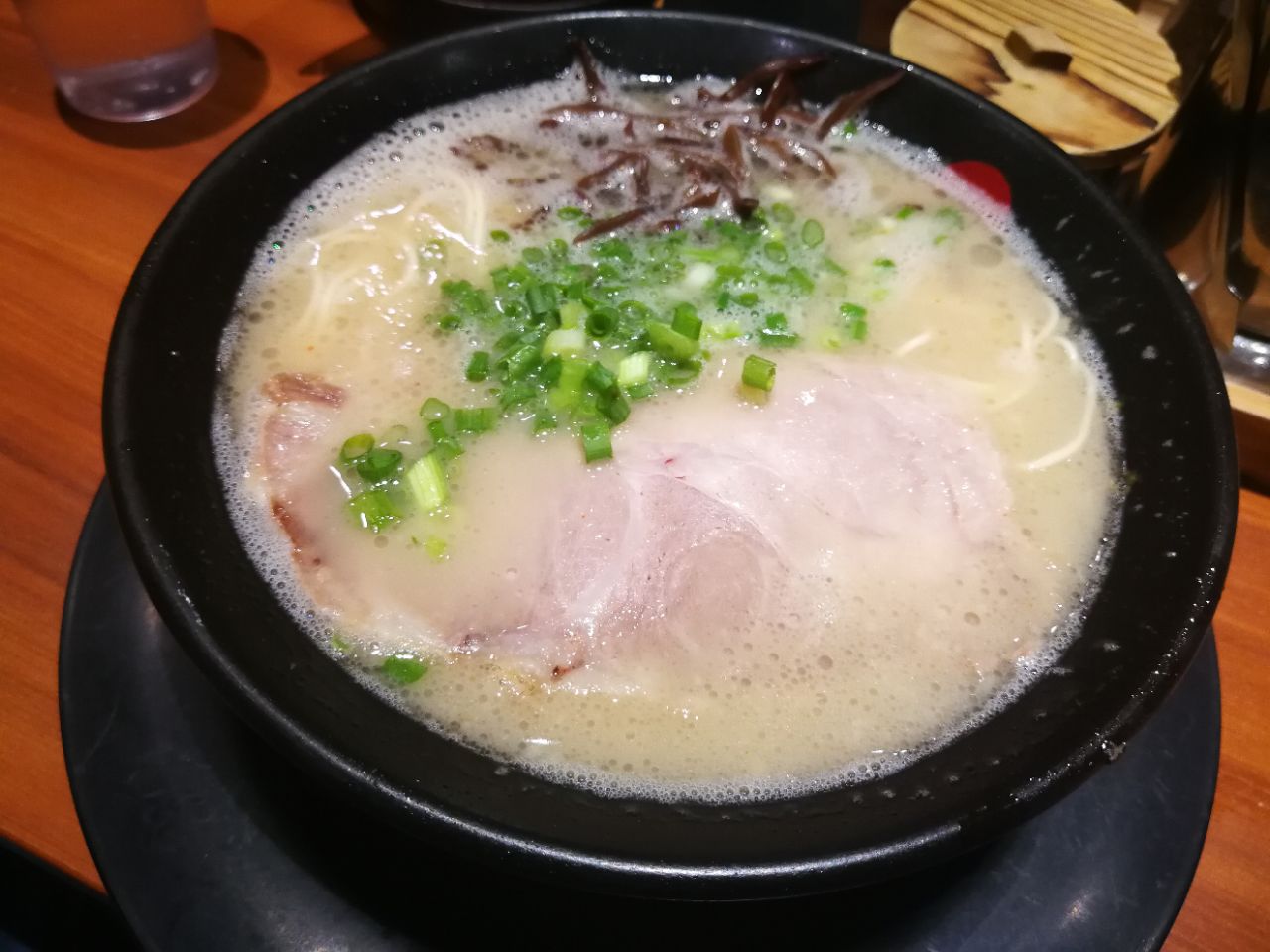 听小伙伴说这家店不错,可每次路过美罗城总是排队,所以就不高兴去了。这次正好又来徐家汇,所以顺道过来看看,因为是工作日的关系人还好。有个缺点就是如果多人来吃的话,人没来齐是不能进去吃的,只能门口等着,等人到齐才能够进去,这点有点死板。点了人气面~博多浓厚豚骨拉面,面软硬程度,放调味料等可以自选。汤底比较浓,貌似加了昆布,所以有点腥味道,这汤我有点吃不太惯。面比较普通,豚骨就一片。比想象中的要失望啊。