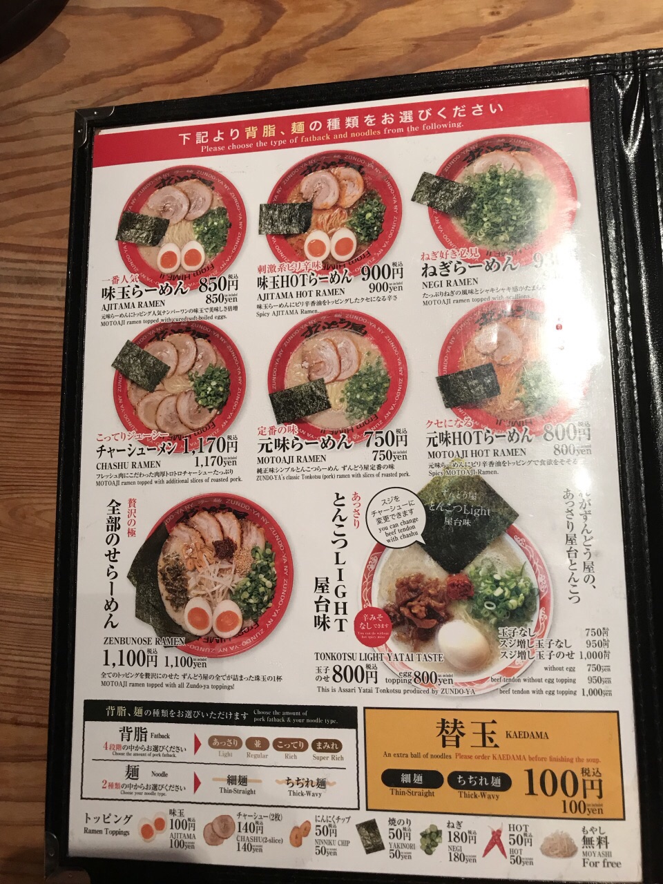 强烈推荐!!!比一兰和金龙还好吃的拉面!标签后面有个英文zundoya,Googlemaps上可以直接搜到,这家拉面比一兰金龙拉面更好吃!本地人都很多这排队吃,这里并没有像介绍说的24小时营业,到时有写早上6-11点营业准备。这里的面和料都特香,有自助的红色的姜丝,还有酸菜麻辣,不过一点都不辣。还有就是这家店只收现金不刷卡,服务员都不会中文,但是菜单有中文翻译。面和煎饺都很好吃!