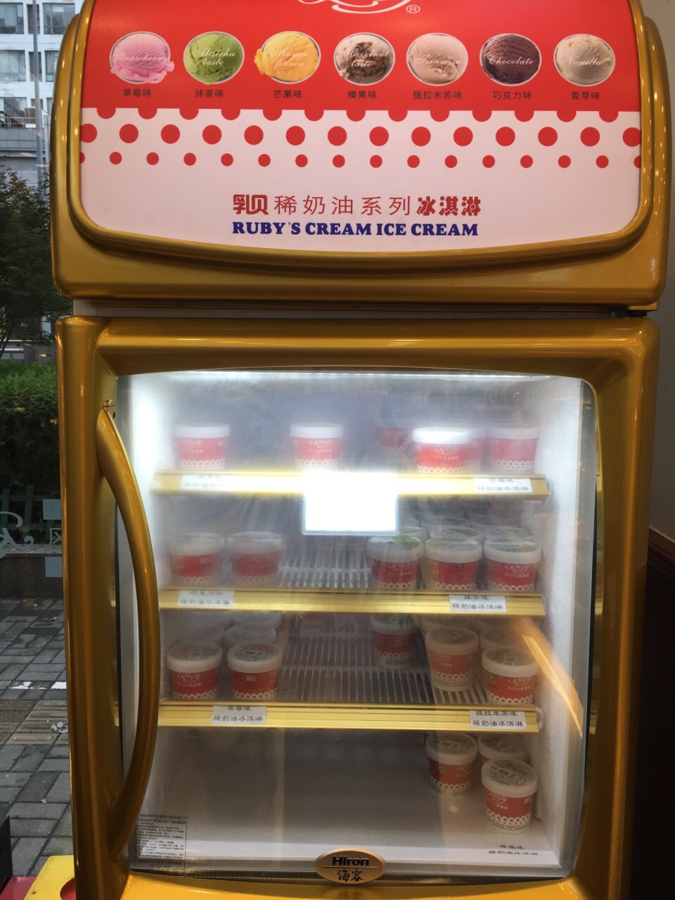 这家在四平路天宝路附近,小小的一家,但东西蛮全的。现在突然之间红宝石的奶油冰淇淋开始流行了,18.00一个的新产品,有7种味道,路过了就正好买来尝尝。 价位要比巴西都贵了,好在的确比一般冰淇淋多了奶油味,妹妹说跟红宝石的鲜奶小方妥妥的一个味道,哈哈哈哈~~ 我觉得还能吃吃吧~~ 尝鲜而已~~