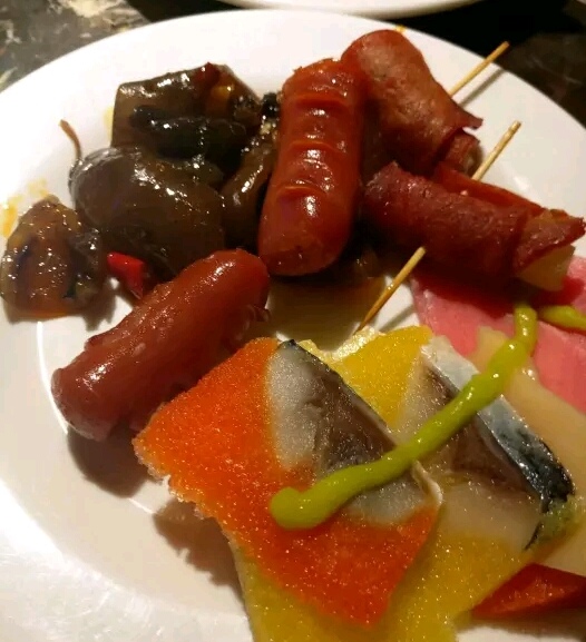 人太多了!菜品种类很多,很吸引人。然后各种甜点,生鱼片,熟食,海鲜有,虾,蟹,扇贝等等,然后,有很多类似生蚝这类的,都是烤熟了自己取,但是,人太多了,都要排队,如果慢了,基本上你就拿不到了。总体感觉,一般般,水果到还可以。