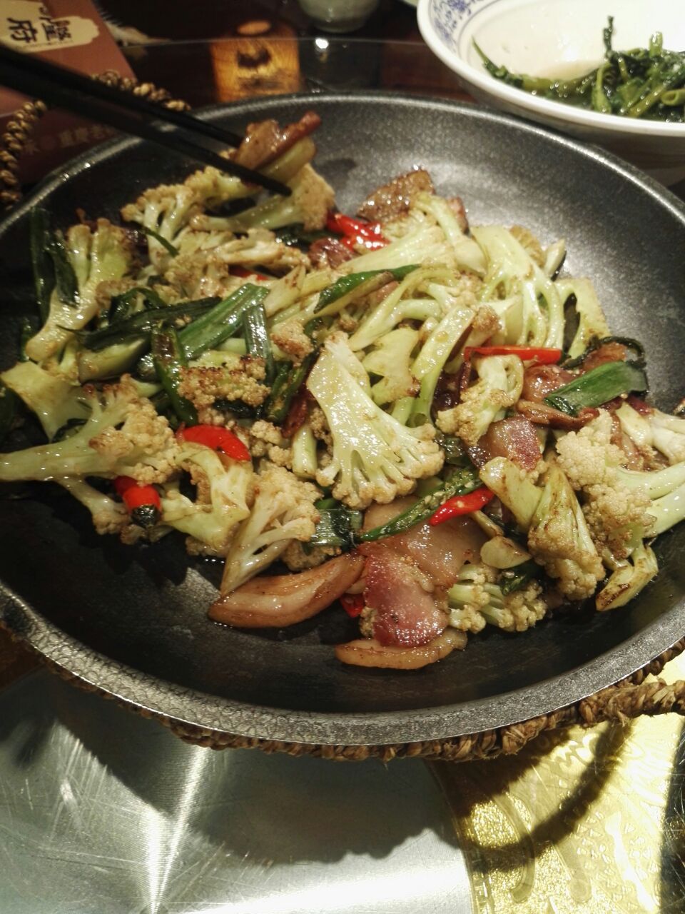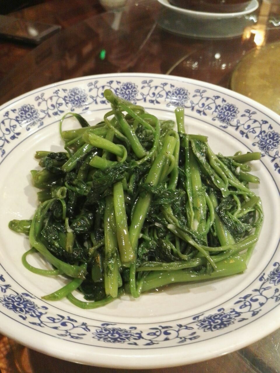 中式装修,就餐的人还是很多。盘子大,但主菜份量一般。