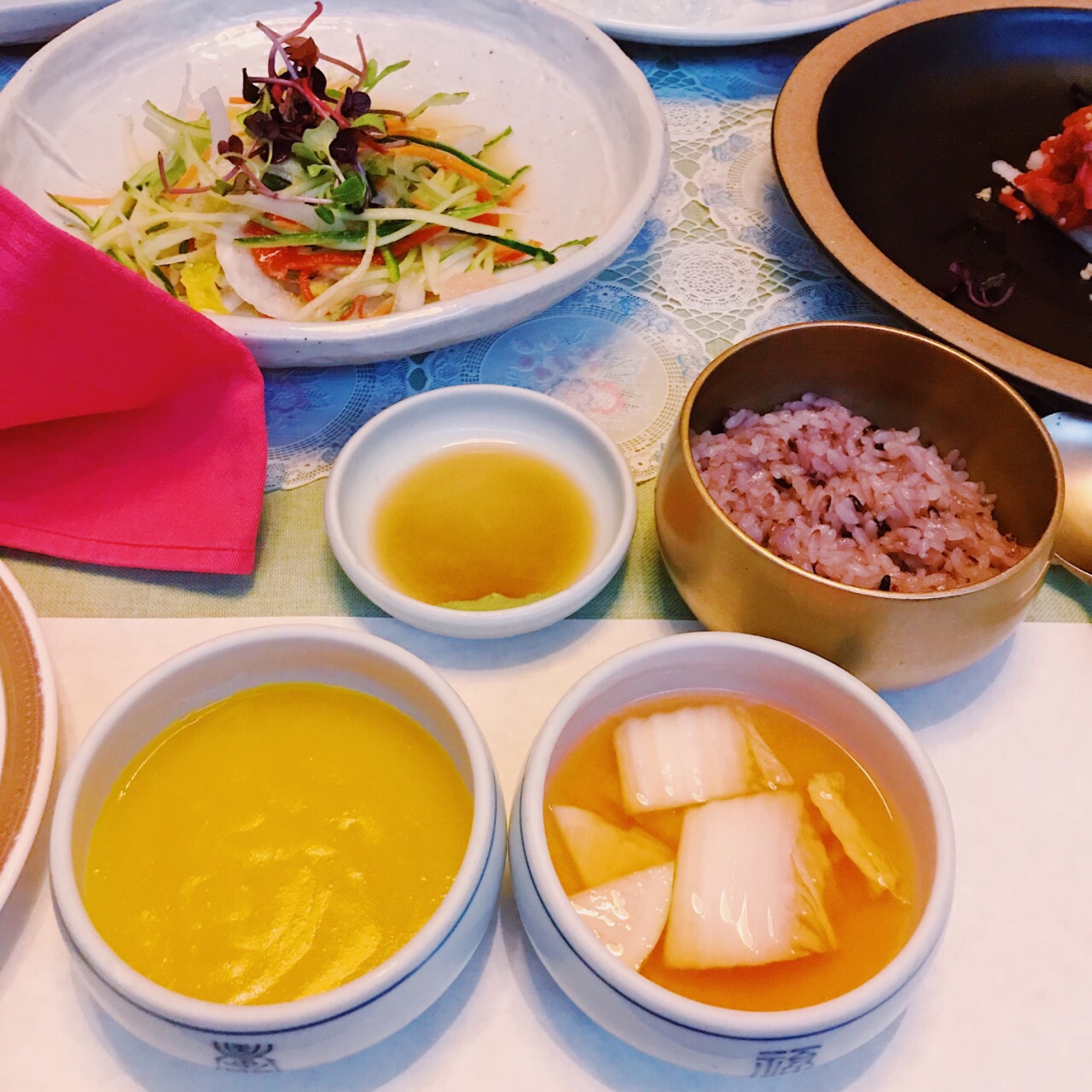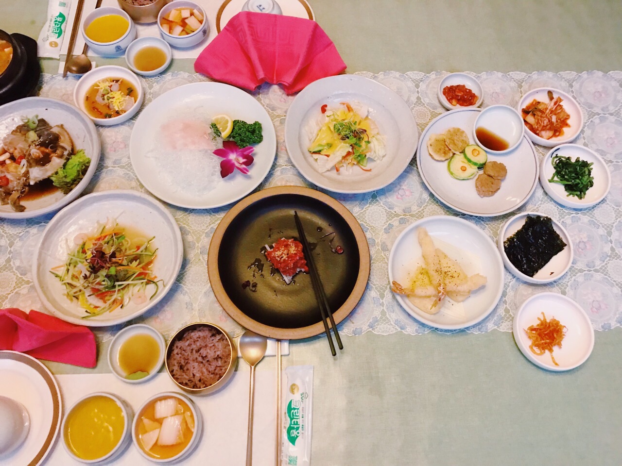 就在明洞站附近 超级好找 据说这家店的菜品都是韩国古代君王的饮食 餐厅还可以免费穿韩服 穿越感十足 细密性很好 每个房间都是小隔间 还可以体验韩国传统暖房 我们两个人吃 感觉一张长桌子都摆满了 菜品真心很丰富诱人 南瓜粥甜味刚刚好 超级好喝 推荐酱牛肉 生鱼片 生牛肉和酱蟹 都是韩式传统料理 喜欢的人就会很爱吃 吃完还有水果和酸梅汤 超满足~