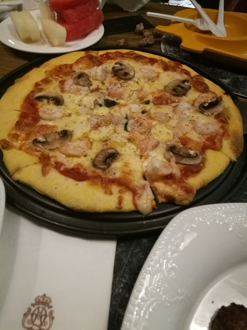 半年没来了,今天赶上61儿童节,所以人特别多,好在我提前订位,否则又得等等等~午间套餐98一位的,觉得蛮划算,但是因为前菜和汤也没有很有喜欢,而且98价位的牛排一点不好吃,好吃的至少要加30,所以索性不如单点了~女王西冷还是很不错的~薄底的披萨还不错,孩子挺喜欢~自助沙拉吧东西少很多,水果就两种还是便宜的,火腿也没有了,蛋糕半个小时能上一次就不错了,越来越没意思~儿童乐园里也破旧没有更新,书破破烂烂也没有更新一下~没点酒水人均100,感觉短时间没不会再来了~