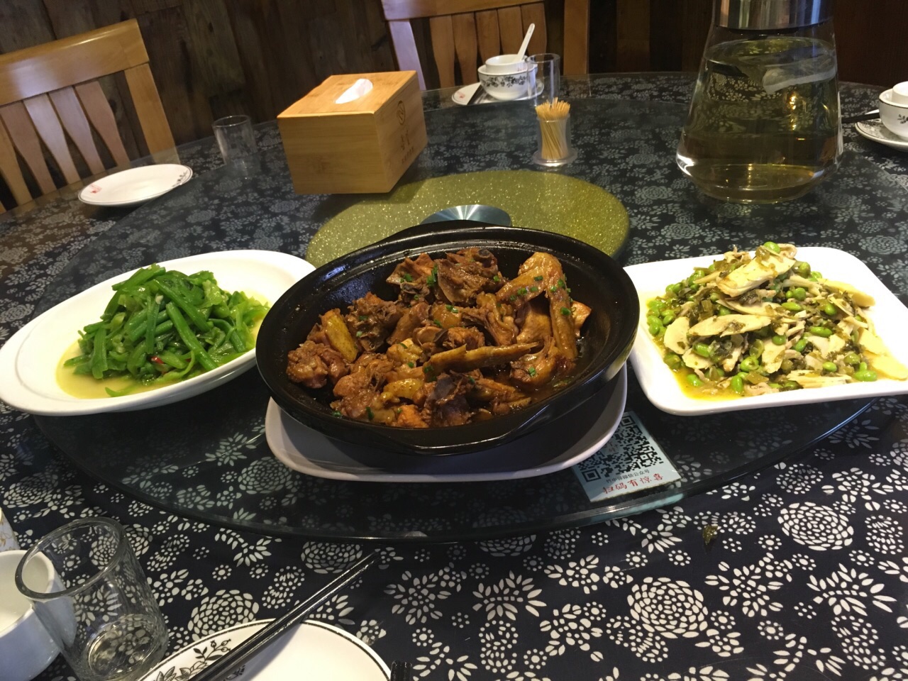 土鸡味道不错,扁笋毛豆和南瓜藤一般般,三个菜加个蛋炒饭要230元,感觉贵了。