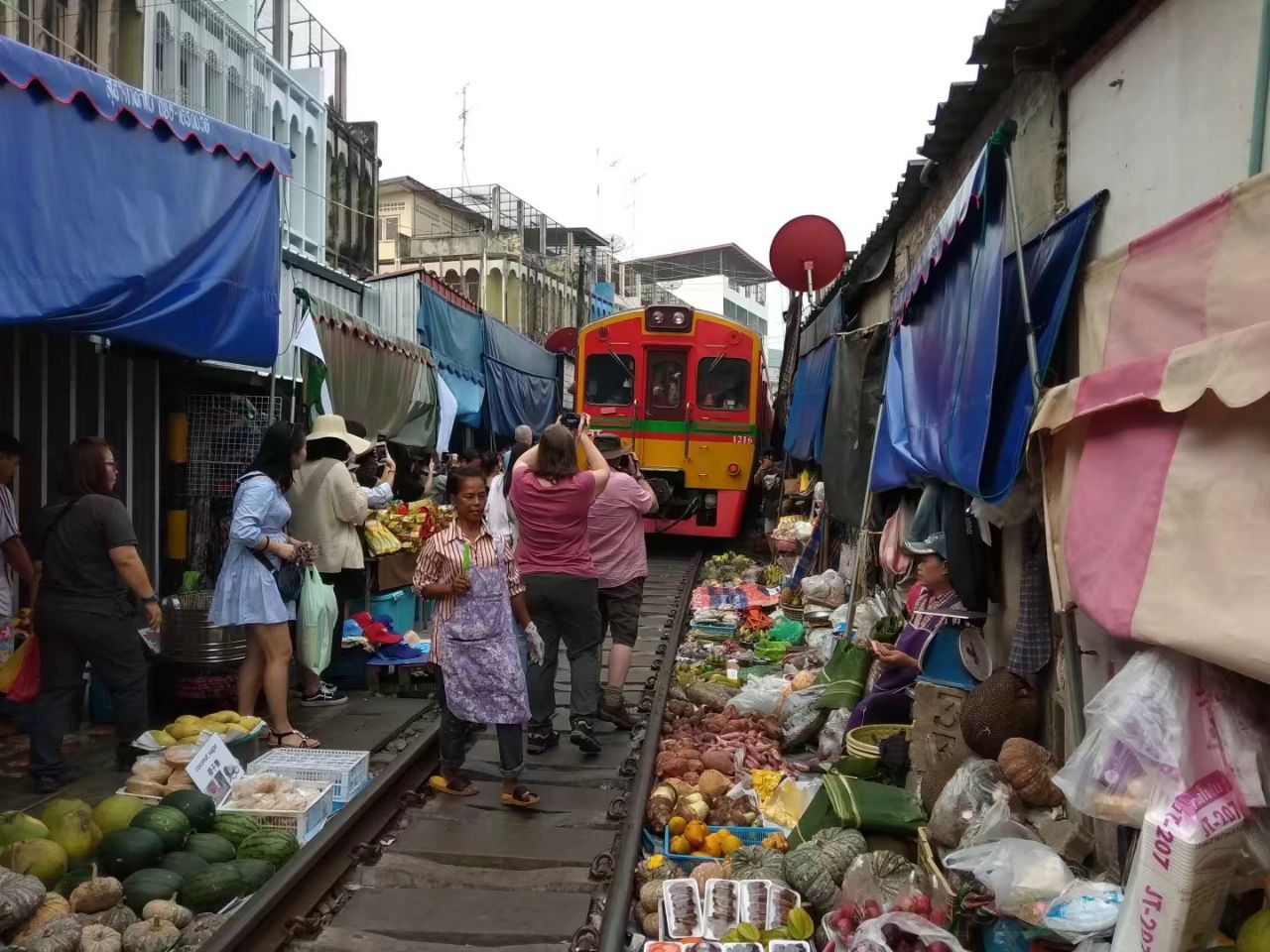 ...定距离,铁道市场可以看到火车经过时候,两旁的摊档收摊的情况,非常震撼,而且市场里面的东西很便宜美功铁道市场建议跟团游,因为距离曼谷有一定距离,铁道市场可以看到火车经过时候,两旁的摊档收摊的情况,非常震撼,而且市场里面的东西很便宜!