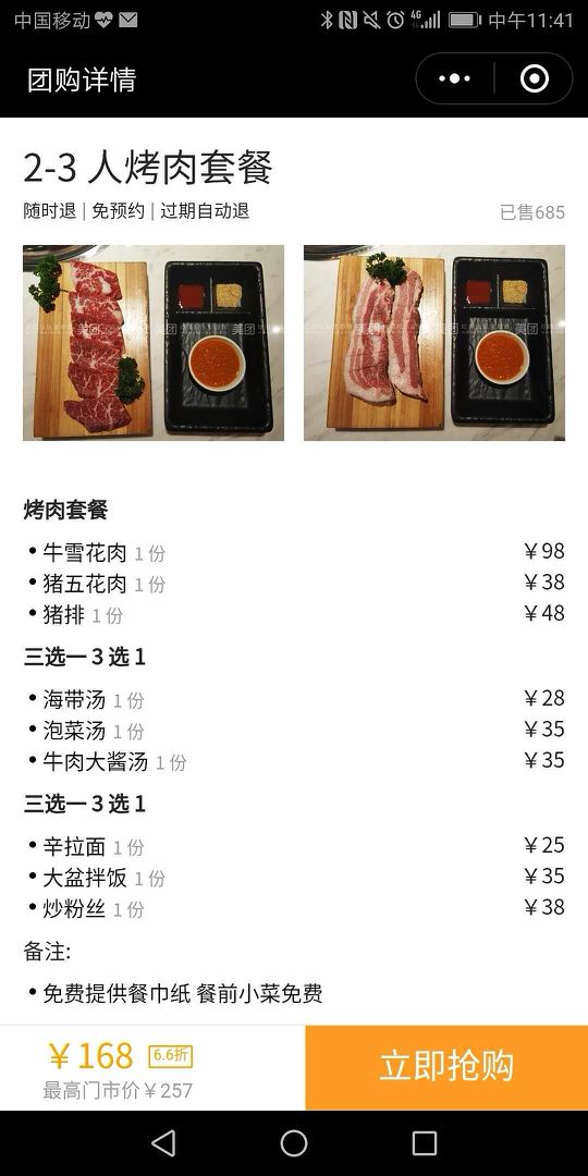 老同事聚餐,同事说韩剧看多了要吃韩国料理。虹井路太远,就在徐家汇永兴坊随便挑了一家。中午11点半到的,上座率还蛮不错。四个女生胃口不大,我们点了一个2-3人套餐,一个烤虾,一份煎饺,一份海鲜葱饼。套餐里面选了大酱汤和炒粉丝。配菜都一般,本来蛮期待他家的土豆色拉,结果那天没有,有点小失望。套餐里面的牛肉和猪排都不错的,腌制得很入味。炒粉丝很赞,超喜欢的。炸煎饺外面脆脆的,味道真心不错,海鲜饼也很好吃。一顿饭吃下来超过我们原来的预期,感觉很饱。四个人都没点饮料,算下来只用了300不到,价格是很实惠了!