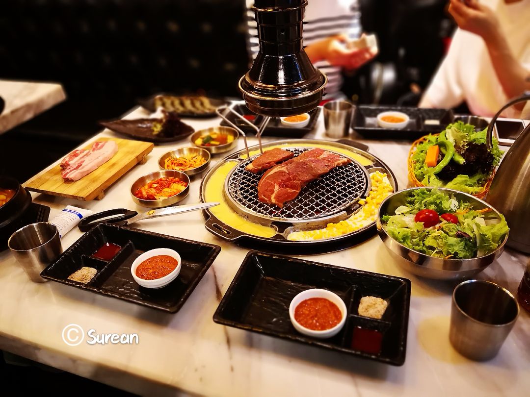 套餐里面的牛肉和猪排都不错的,腌制得很入味。老同事聚餐,同事说韩剧看多了要吃韩国料理